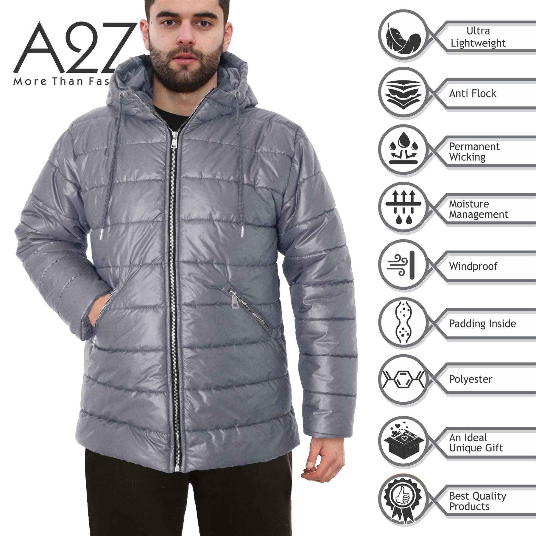 A2Z Mens Ladies Hooded Silver Zipped Puffer Jacket Steel Grey Padded Long Sleeves Jacket Fashion Coat Gift For Adults S-XXL