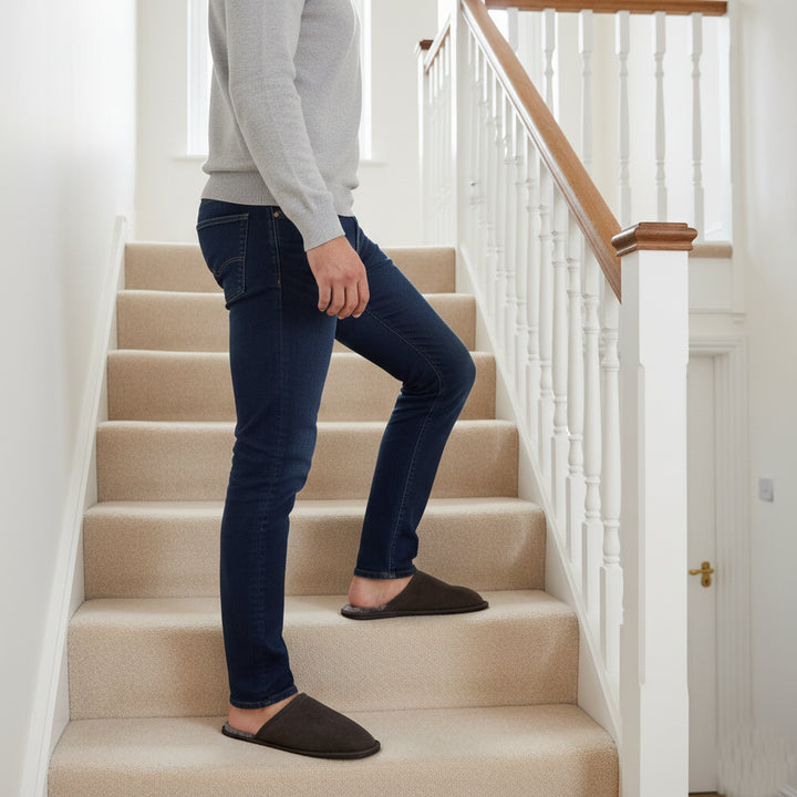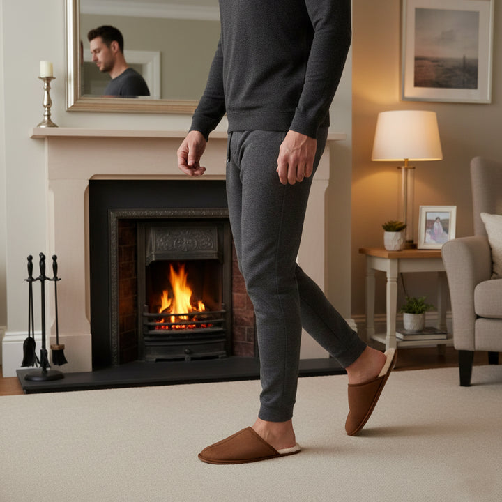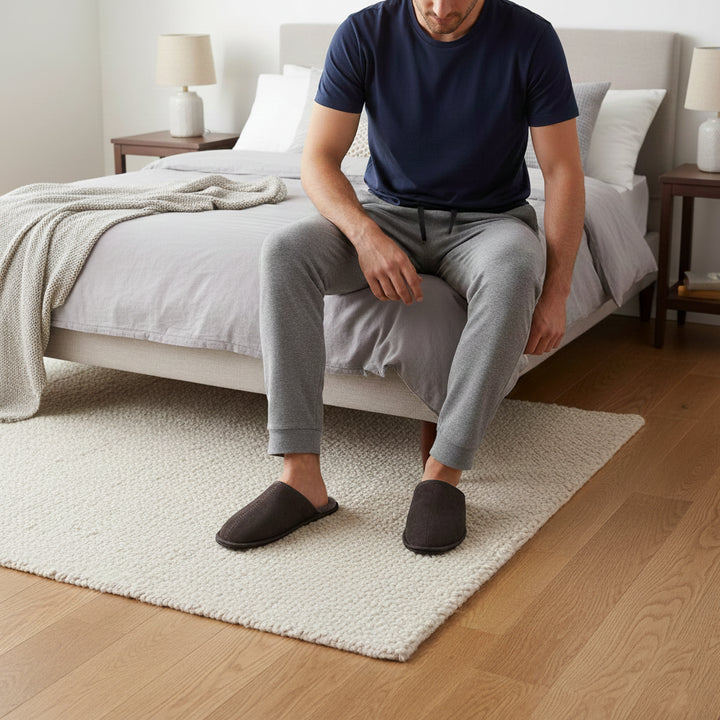 These quilted puffer slippers, lined with soft fleece for extra warmth and comfort, are available in three stylish colors: Grey, Navy, and Chusnut. They come in UK sizes 6/7, 8/9, and 10/11, ensuring the perfect fit for every wearer