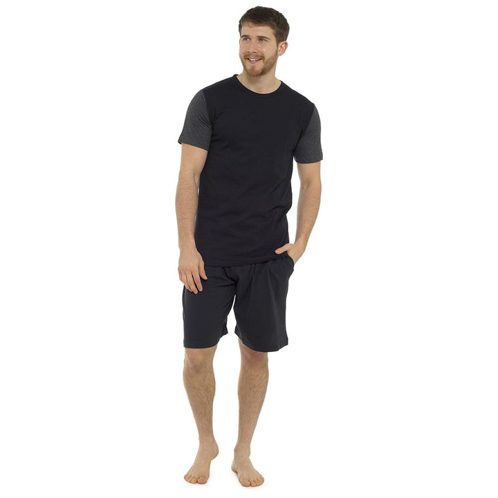 A2Z Mens Pyjama Contrast Panel Short Sleeve T-Shirt Shorts Pyjamas 2 Pieces Set