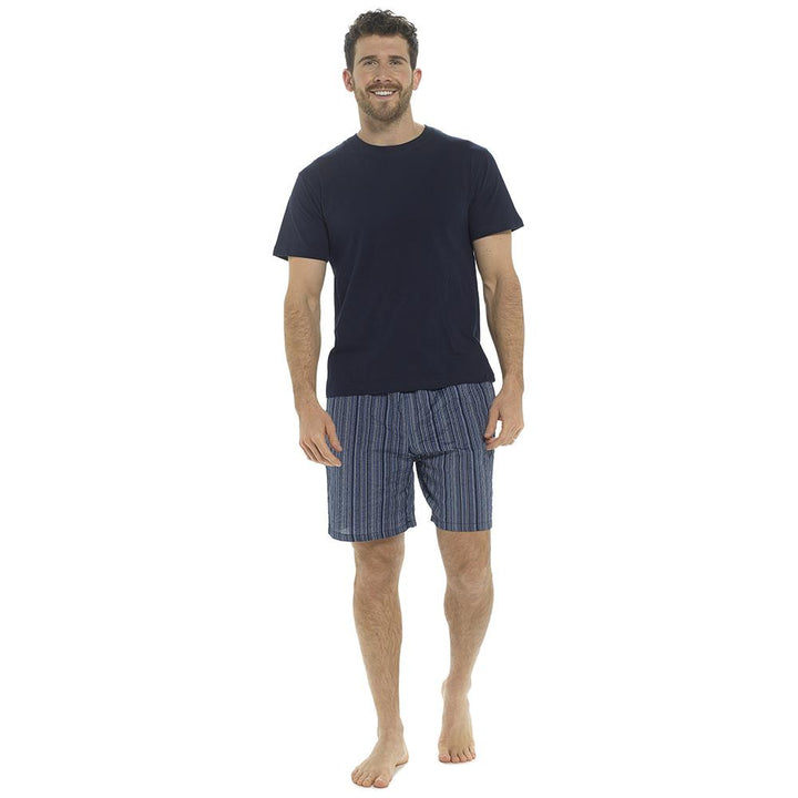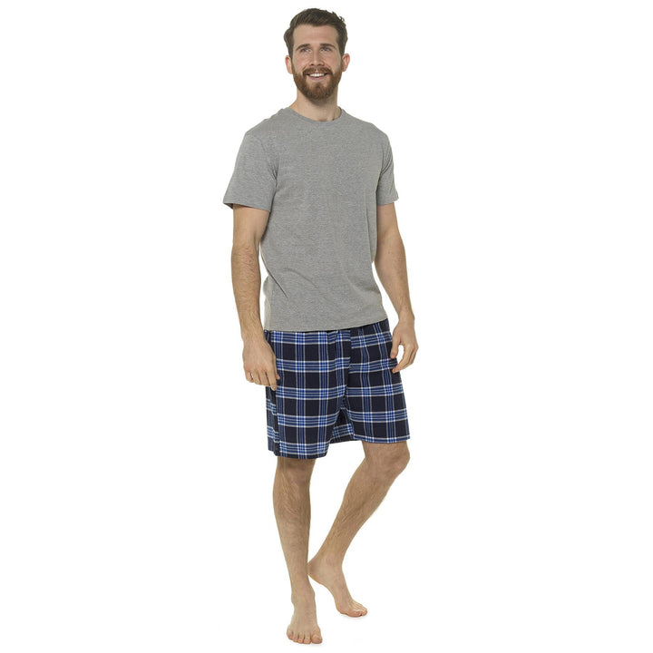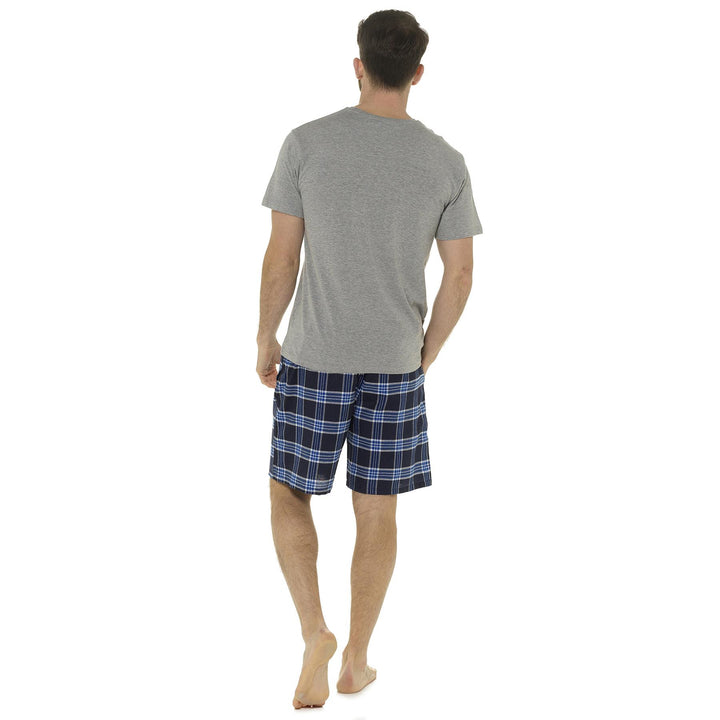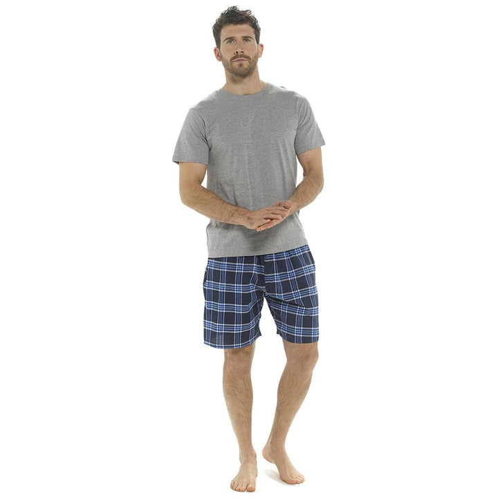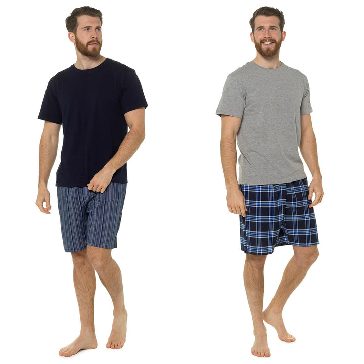 A2Z Mens Pyjama Soft Plain Jersey Short Sleeve T-Shirt Woven Check Short PJS Set