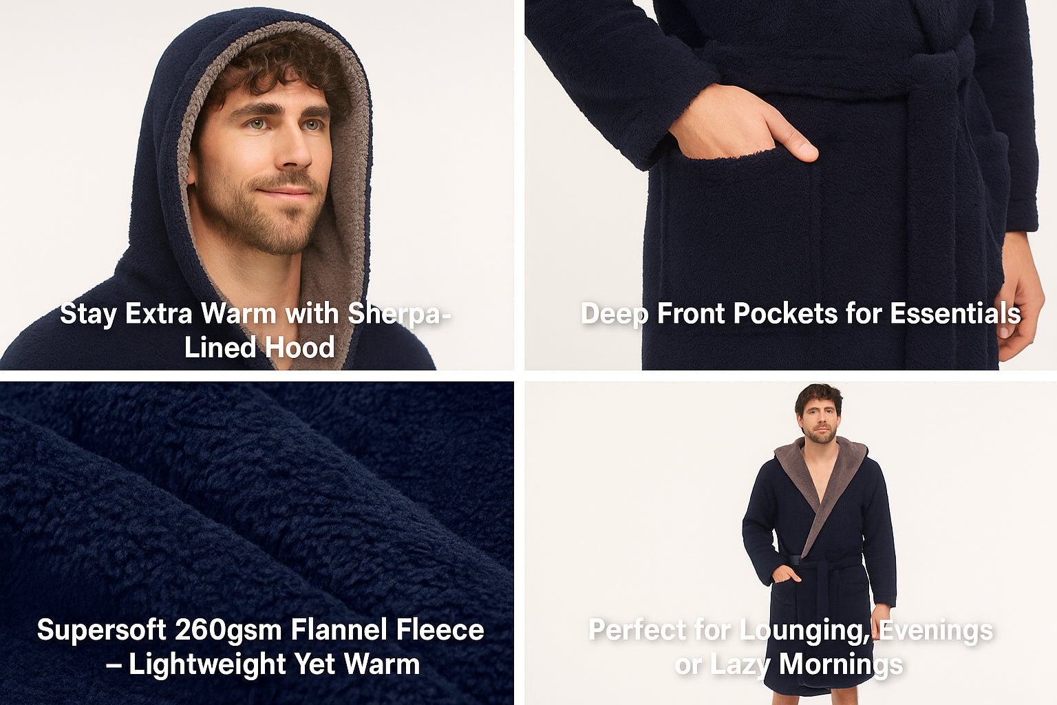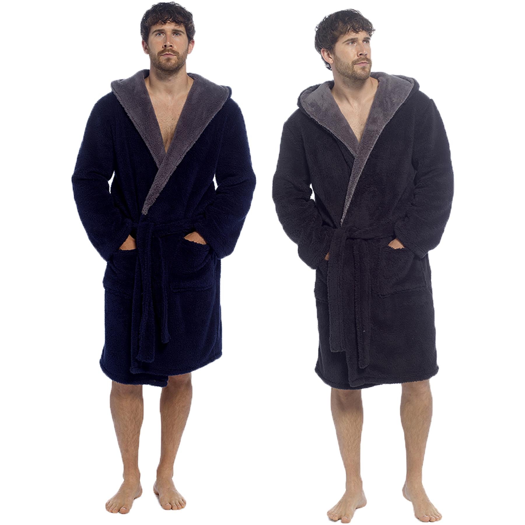 A2Z Mens Sherpa Fleece Hooded Robe Soft Warm Fluffy Bathrobe Cosy Loungewear