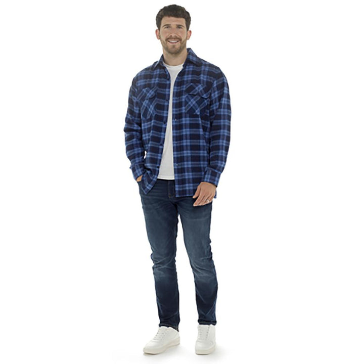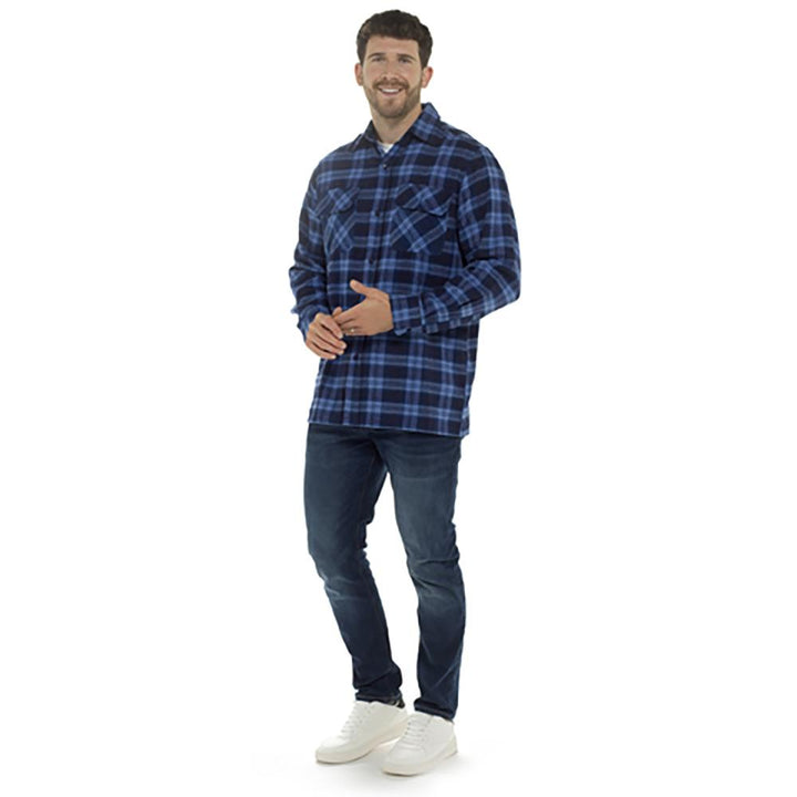 Crafted with exceptional quality and attention to detail, this insulated flannel shirt jacket is a standout addition to any wardrobe. Featuring a 100% premium cotton smooth, quilted-lined sleeves, it offers superior warmth and comfort. The full poly-fill insulation and convenient side-seam pockets ensure you stay warm from cuff to cuff, making it a top choice among men's flannel shirt jackets. -