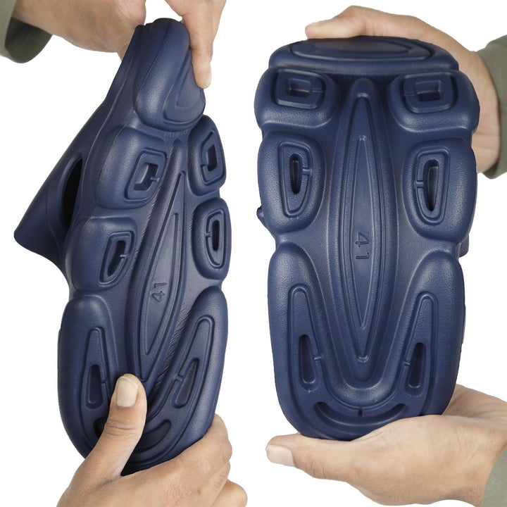 Crafted with 100% premium EVA, these mens sliders deliver exceptional cushioning and foot support. The ultra-soft foam reduces fatigue during all-day wear, ideal for lounging at home or strolling on the beachside.