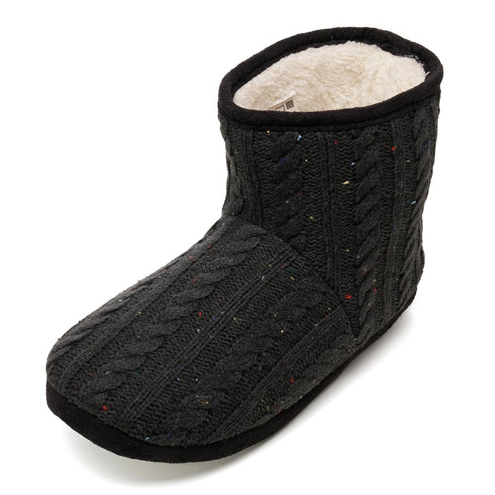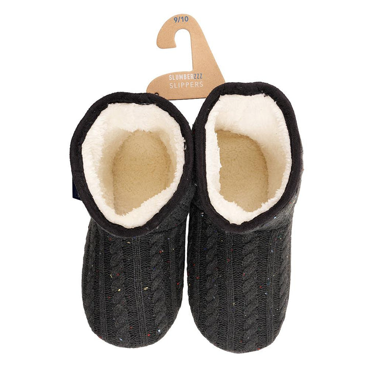 Crafted from premium speckled knit fabric, these mens bootie slippers offer a stylish cable-knit pattern with subtle multicolour specks. The ankle-height design provides complete foot coverage, locking in warmth while adding a classic winter look ideal for lounging or relaxed evenings at home.