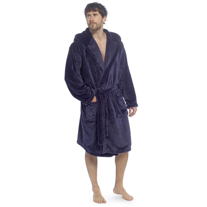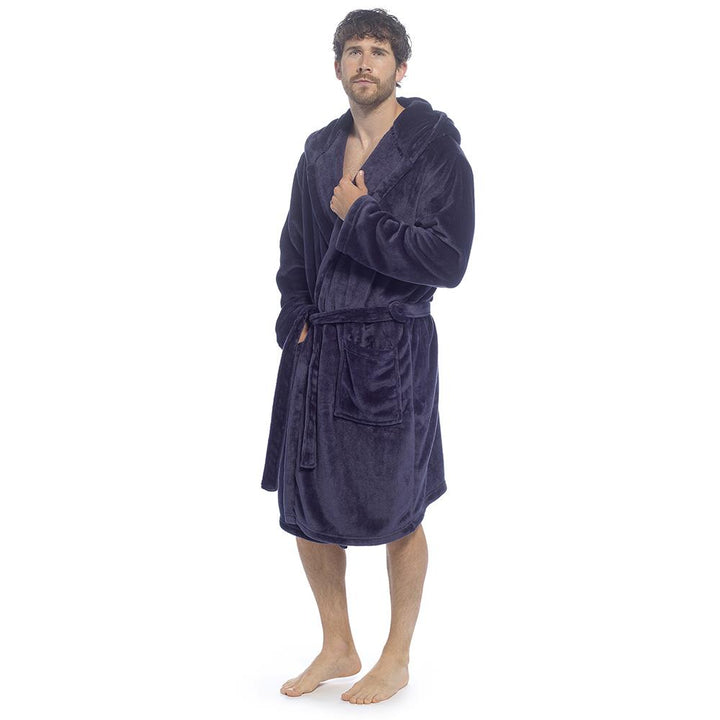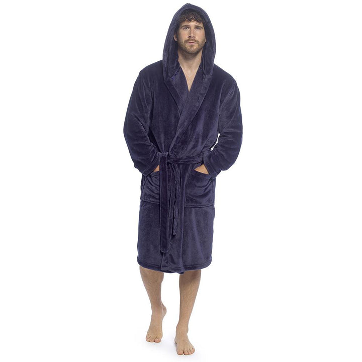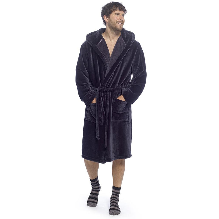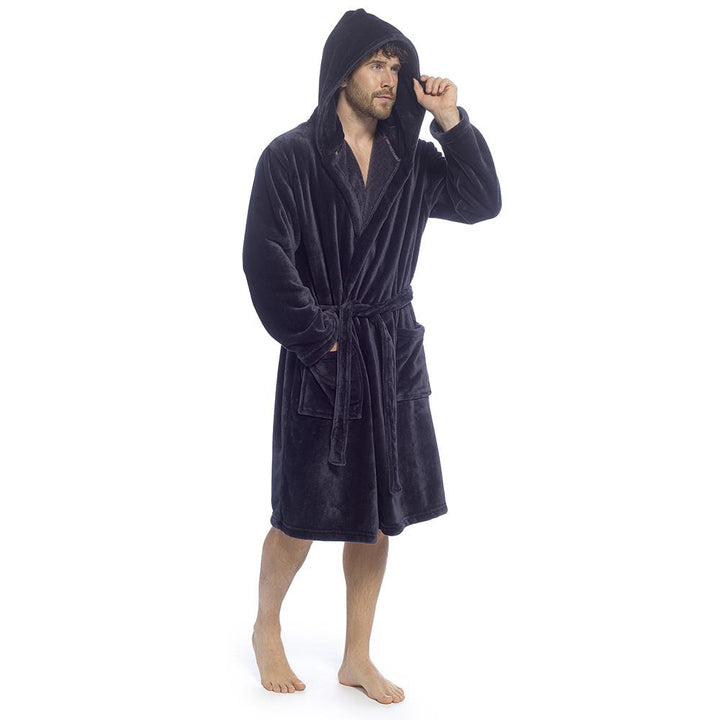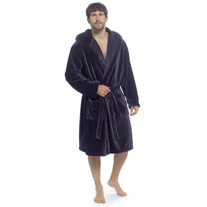 A2Z Mens Supersoft Hooded Fleece Gown Warm Plush Bathrobe with Belt M to XXL UK
