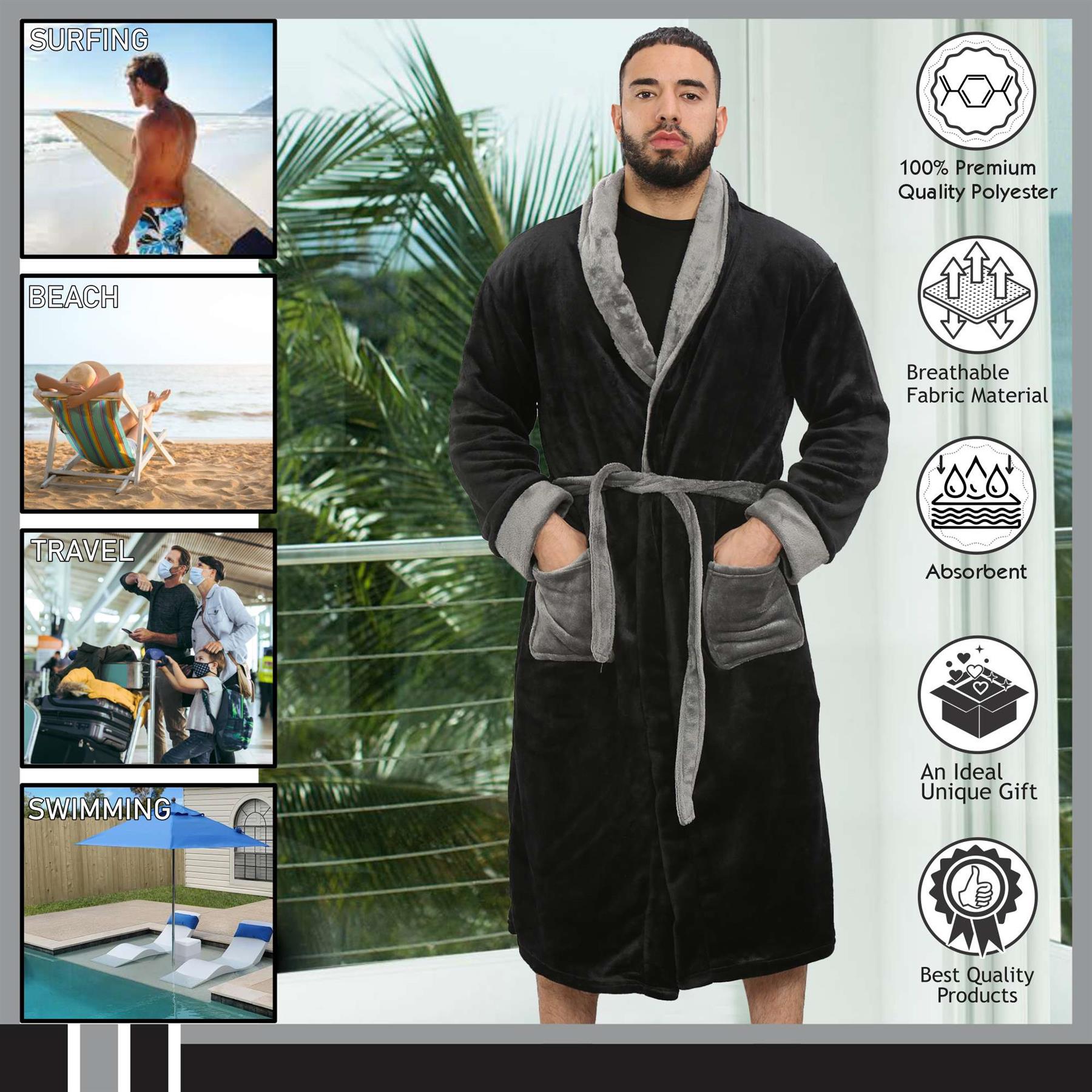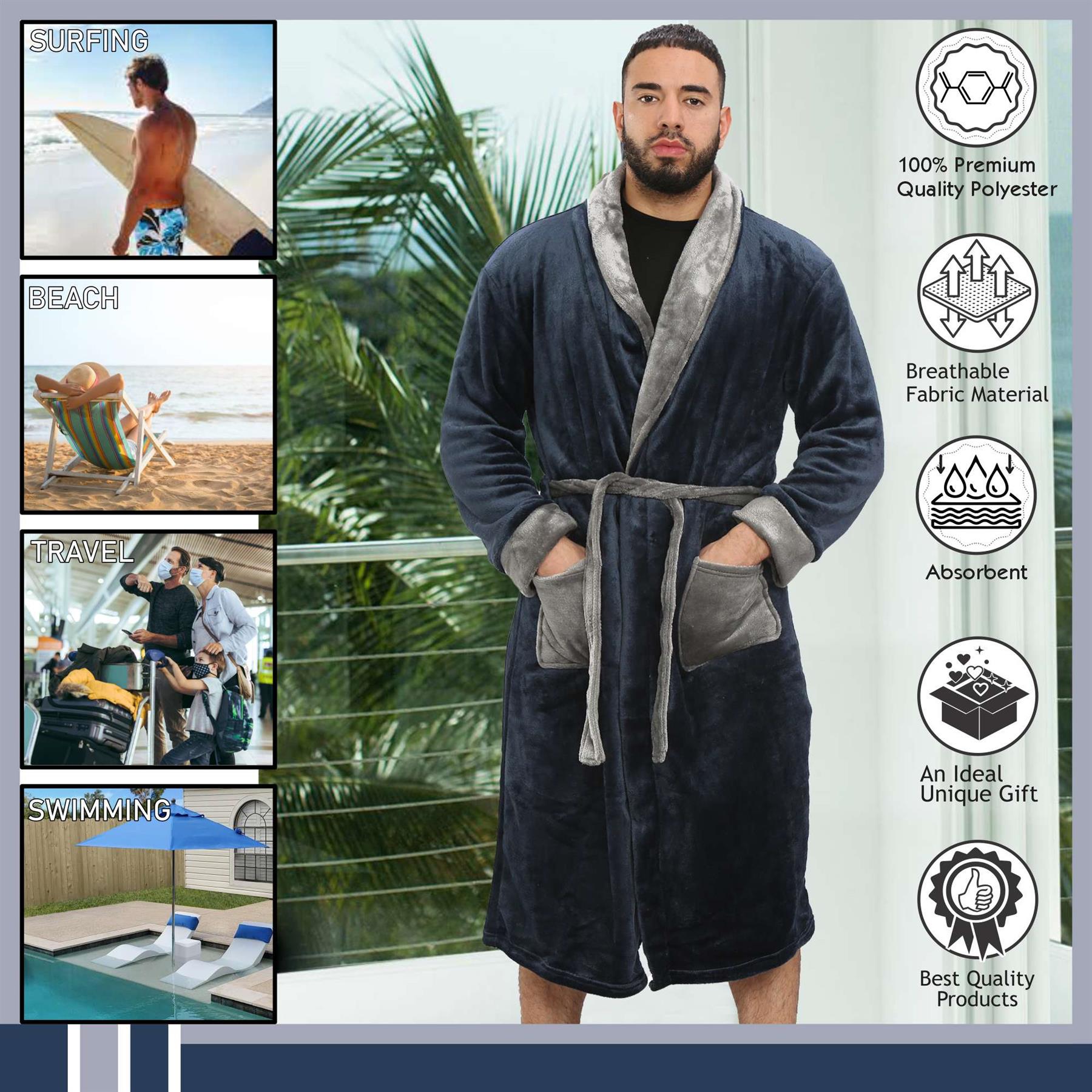A2Z Mens Ultra Soft Luxury Fleece Dressing Gown Warm Cozy Loungewear Adult Robe