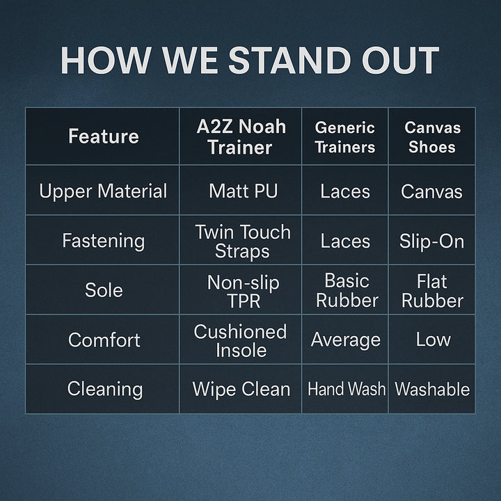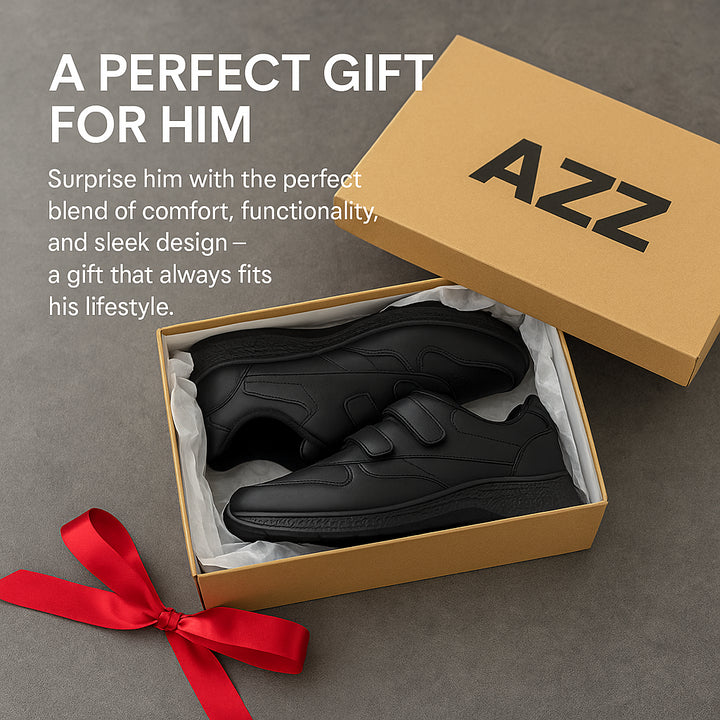 These A2Z Noah mens trainers feature a sleek matt black finish, perfect for work, casual outings, or sportswear. The minimal design with a modern silhouette complements all outfits while offering practical comfort. Ideal for daily wear, gym sessions, or casual walks.