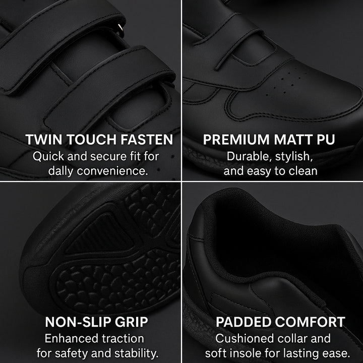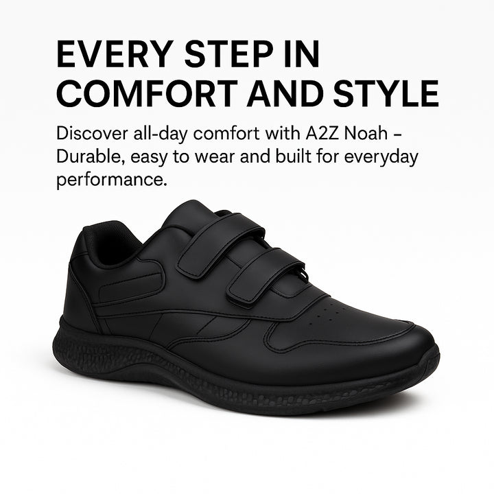 A2Z Noah Mens Black PU Sports Trainers Twin Strap Lightweight Casual Shoes