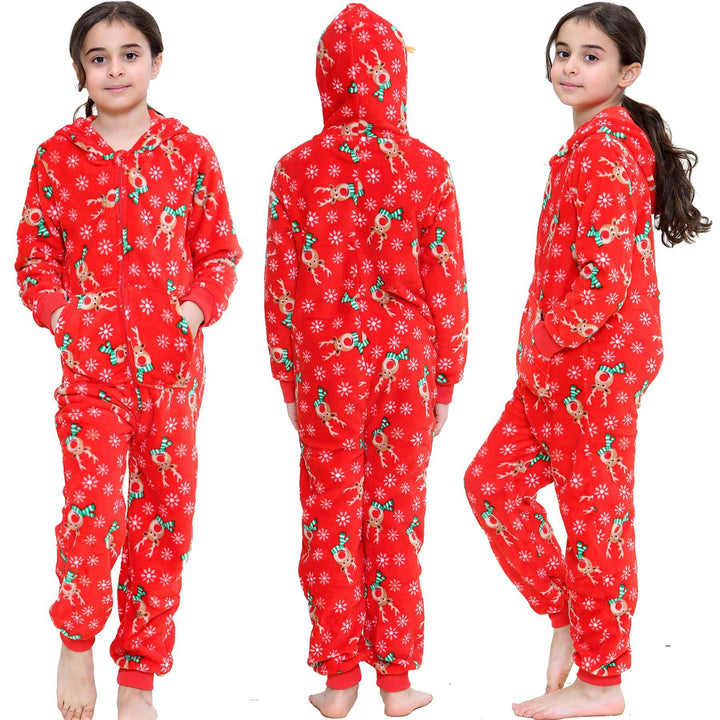 A2Z Onesie One Piece Kids Christmas Rudolph Red Pyjamas Xmas Jumpsuit for Adults