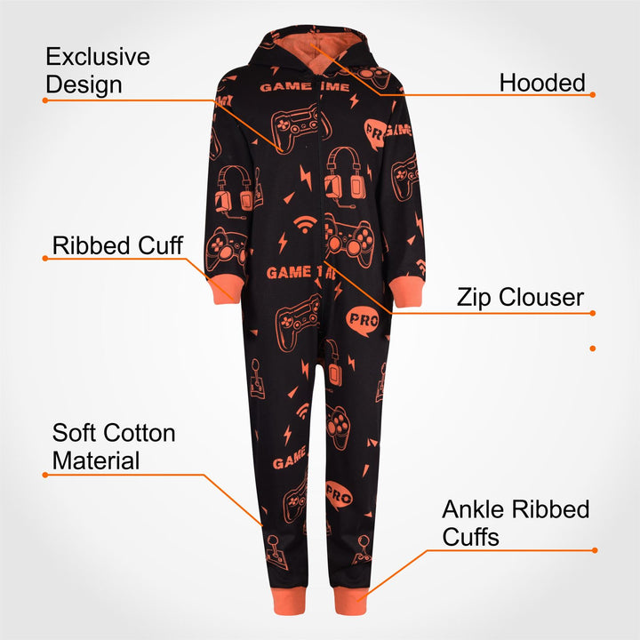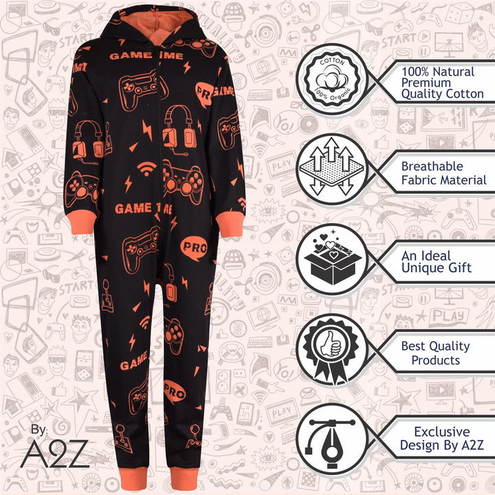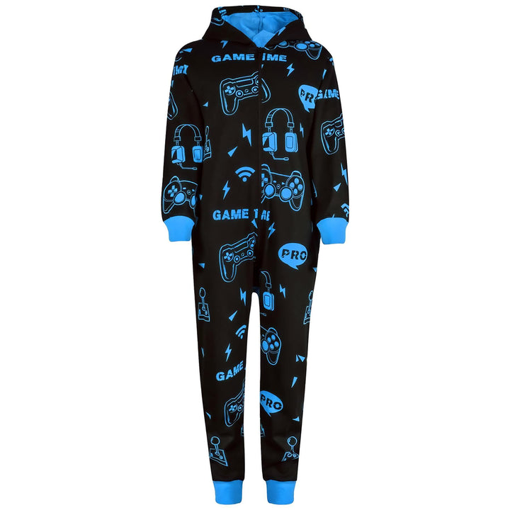A2Z Onesie One Piece Kids Pyjamas Sleepsuit Blue Game Time Costume Girls Boys