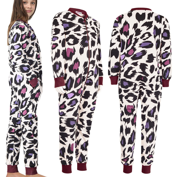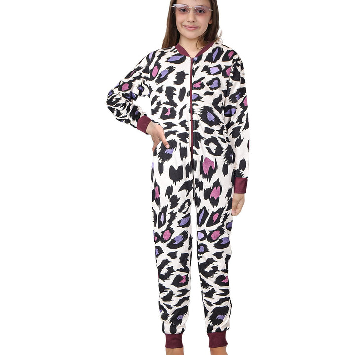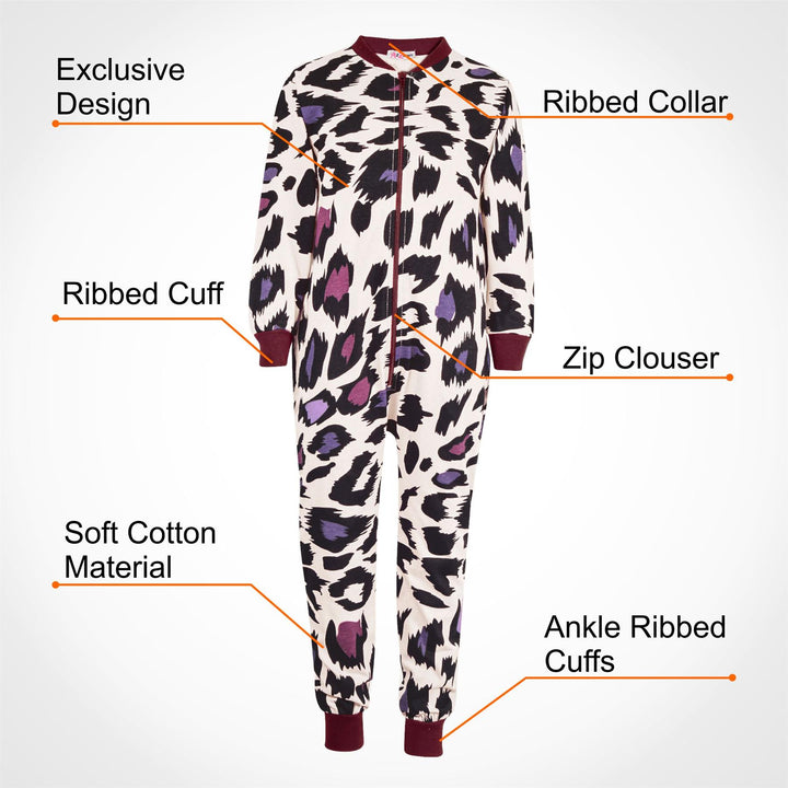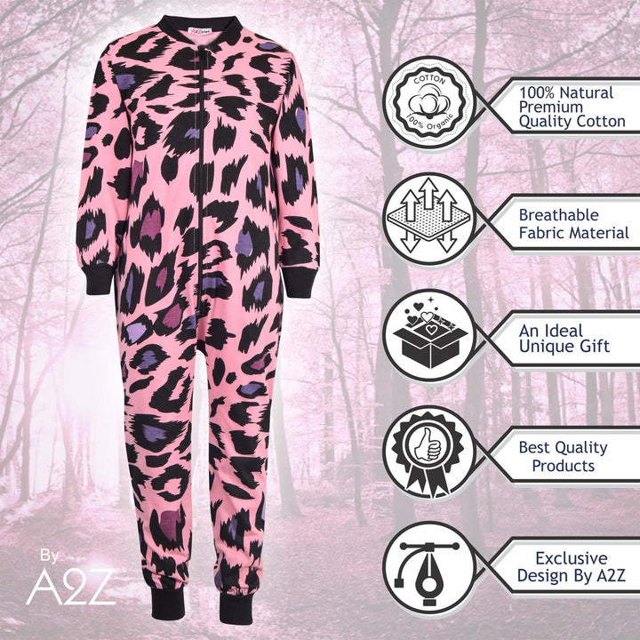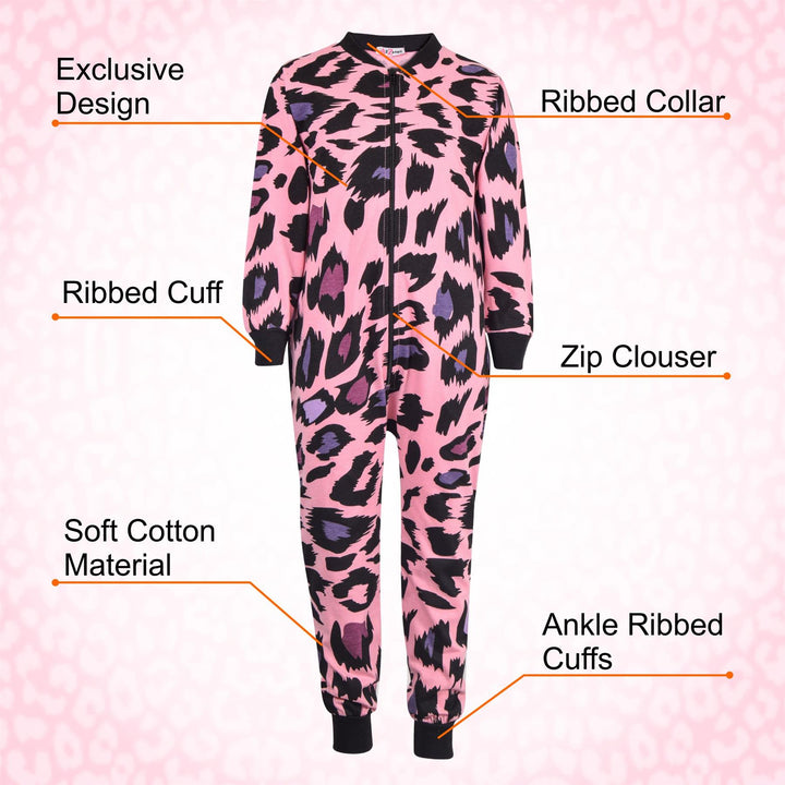 A2Z Onesie One Piece Kids Pyjamas Sleepsuit Leopard Print Costume For Girls