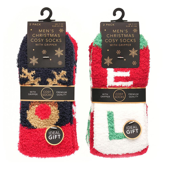 A2Z Pack Of 2 Mens Christmas Cosy Socks Xmas Fluffy Soft Feel Fuzzy Gripper Sock