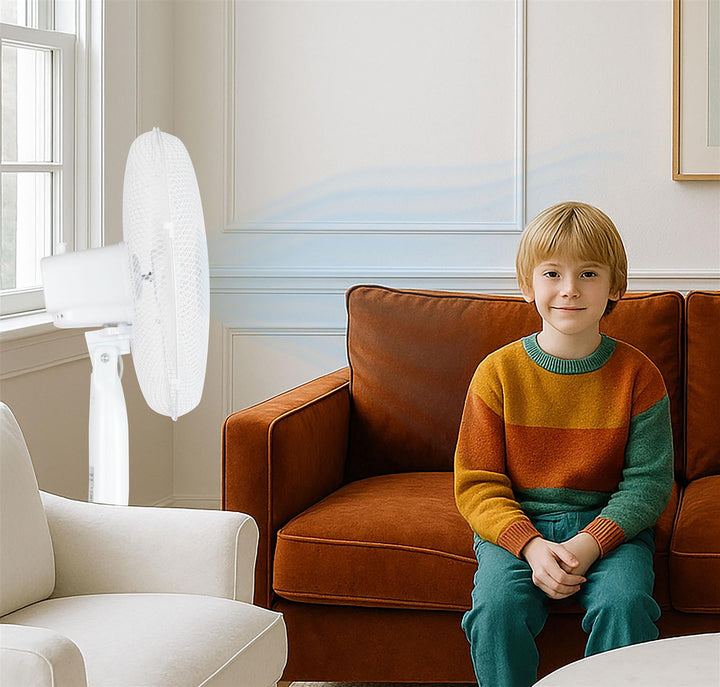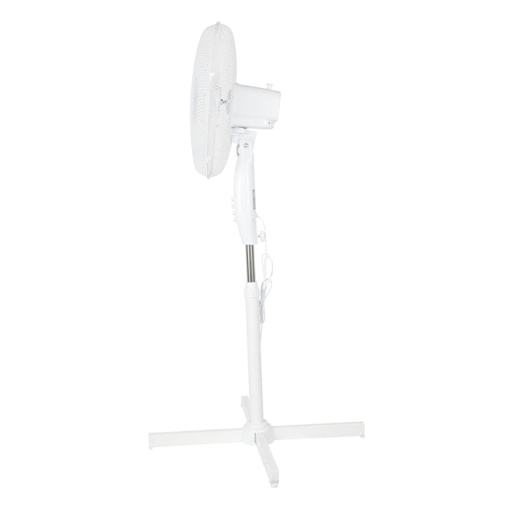 Experience the convenience of a 16" oscillating pedestal fan with three-speed options. Choose from low, medium, or high air speeds to customize the airflow for your comfort. Whether you want a gentle breeze or a powerful gust of air, this fan allows you to adjust the speed to suit your needs. Stay cool and refreshed with this pedestal fan's versatile airflow options.