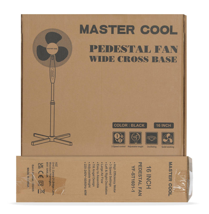 A2Z Pedestal Fan 16 Inch 3-Speed Oscillating Electric Standing Floor Fan