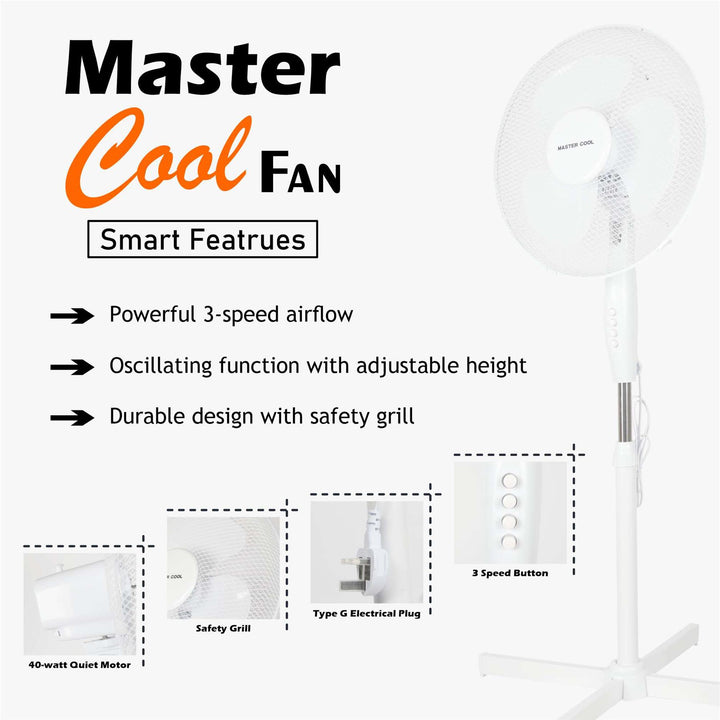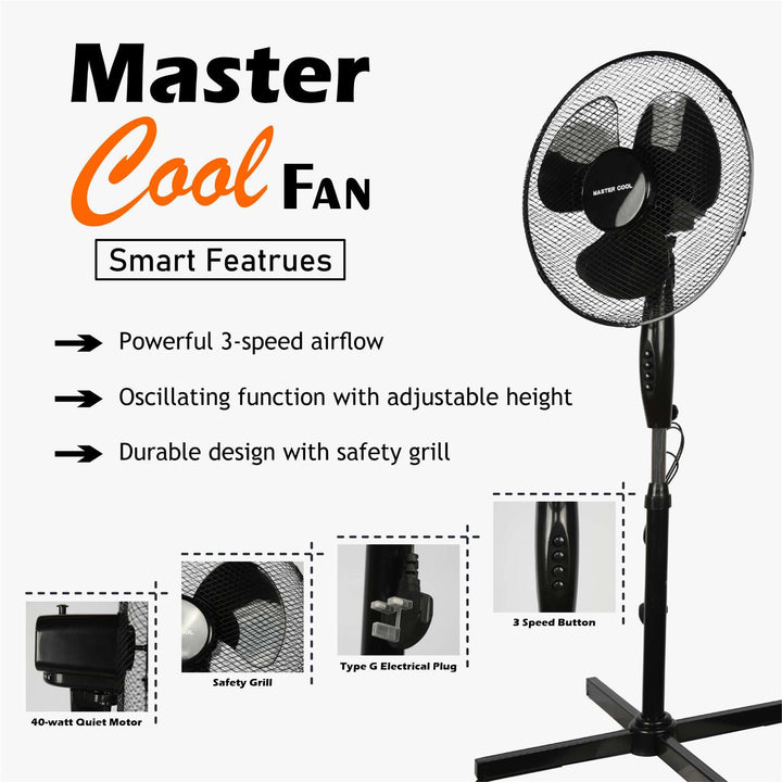 This oscillating pedestal fan ensures ease of use and safety at every turn. The fan blades are protected by a sturdy metal safety grill, keeping your fingers and other objects safely away from the rotating blades. With a convenient push button, you can effortlessly adjust the fan speeds or turn it on and off, granting you full control over the cooling experience. Enjoy peace of mind and convenient performance with this user-friendly oscillating pedestal fan. -