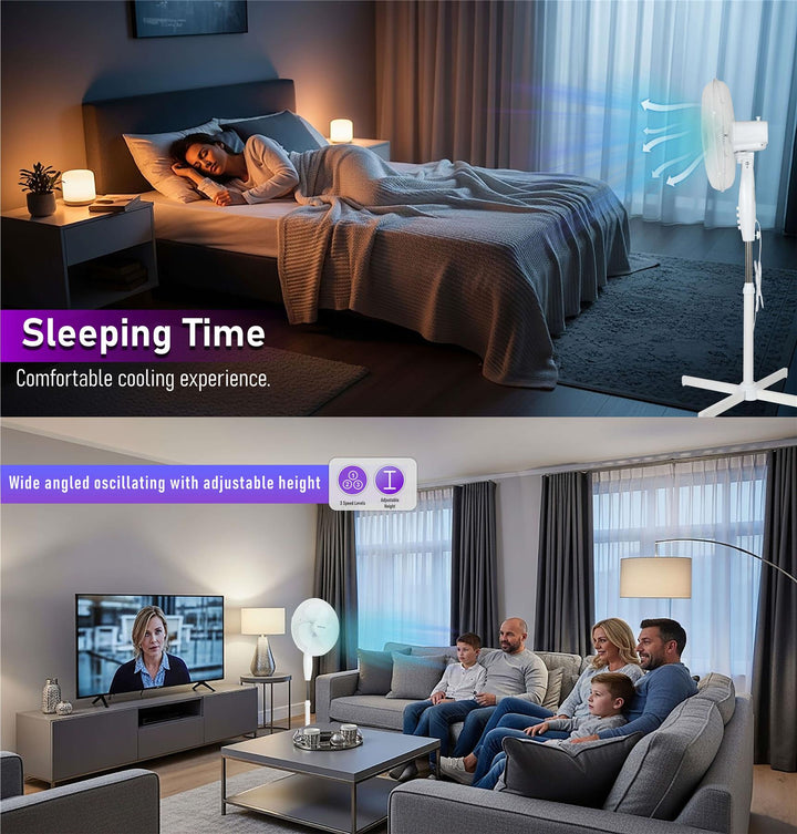 This pedestal fans oscillating feature enhances air circulation and efficient performance. Its wide-angle oscillation ensures that the air is distributed across a broader area, reaching every corner of the room. Enjoy a refreshing and comfortable environment as the fan effectively circulates the air, creating a cool and pleasant atmosphere.