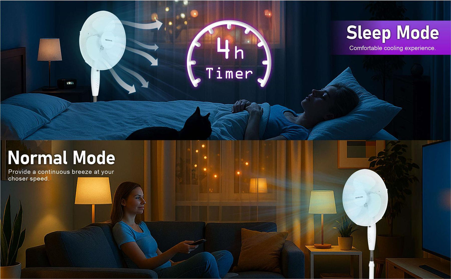 With multiple timer settings (0.5h, 1h, 2h, 4h), you can program the fan to automatically shut off, saving energy and ensuring uninterrupted sleep or relaxation. -