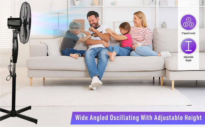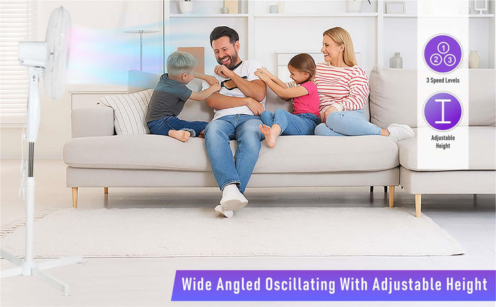 The fan's height is adjustable, allowing you to set it for personal or room-wide cooling. The 90� oscillation feature ensures air is evenly distributed across large areas, making it perfect for bedrooms, living rooms, and offices. -