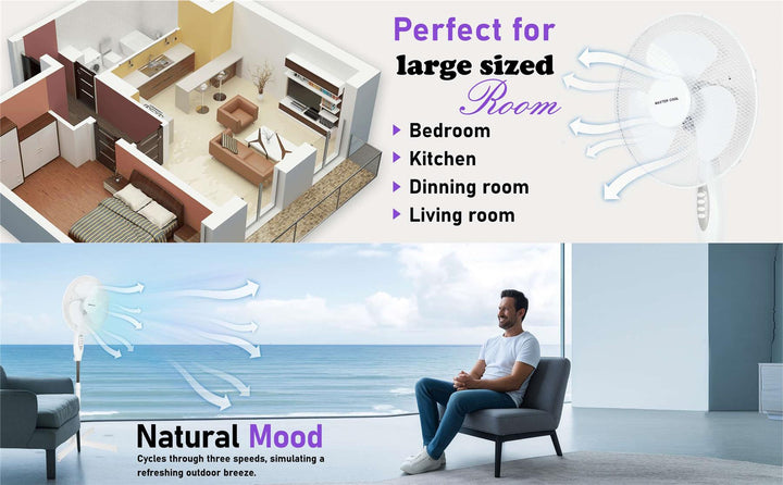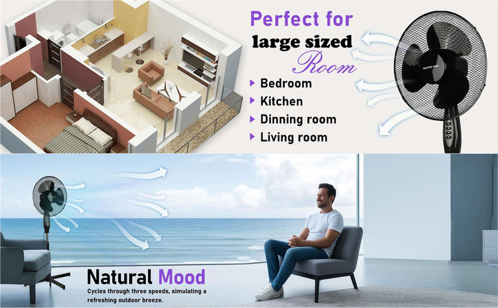 Designed with a wide cross base, this fan offers superior stability and prevents accidental tipping. The high-quality materials ensure long-lasting performance, even with continuous use. -
