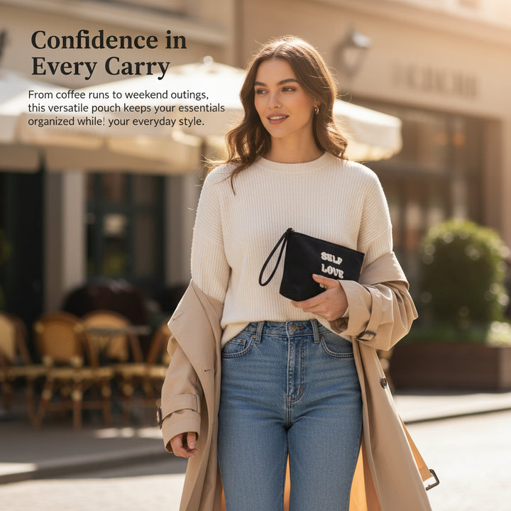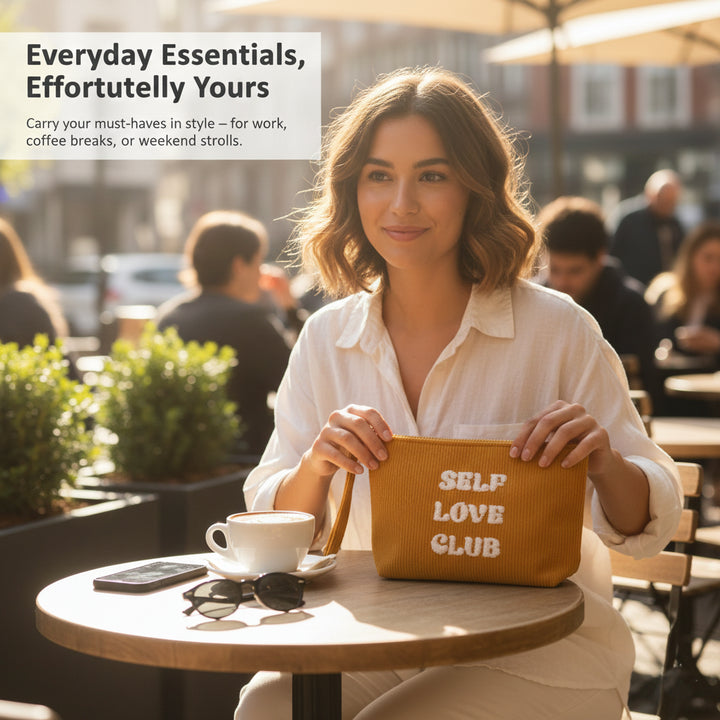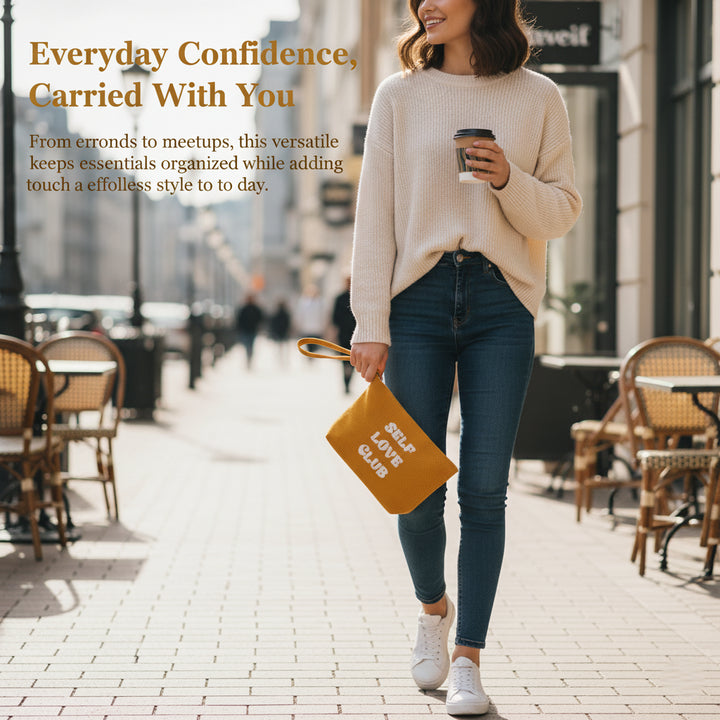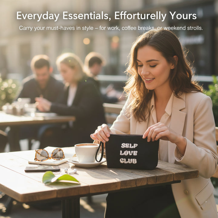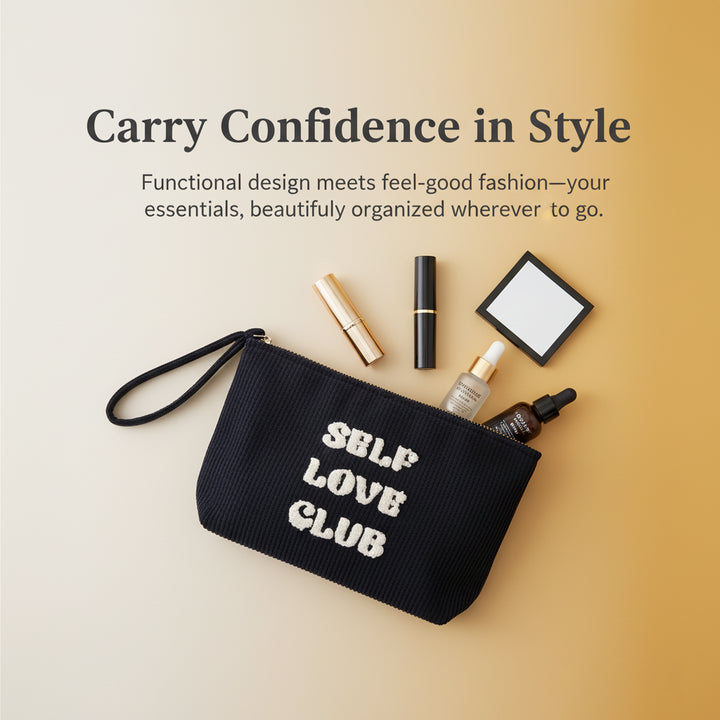 Express positivity with our chic “SELF LOVE CLUB” embroidered pouch – a fashionable accessory perfect for daily use, travel, or gifting. Its bold design celebrates confidence and self-care, making it ideal for makeup, stationery, or everyday essentials while adding a trendy touch to your look.