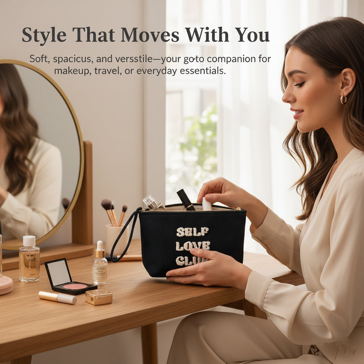 A2Z Self Love Club Corduroy Pouch for Women & Girls Soft Textured Makeup Bag
