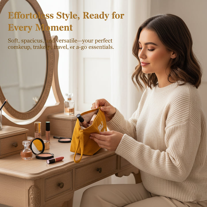 Equipped with a sturdy wrist strap, this corduroy pouch ensures secure handling and easy portability wherever you go. The smooth zip keeps your belongings safe from spills or loss, offering peace of mind whether you’re at home, work, or on-the-go. - COLOURFUL GIFT IDEA FOR HER: