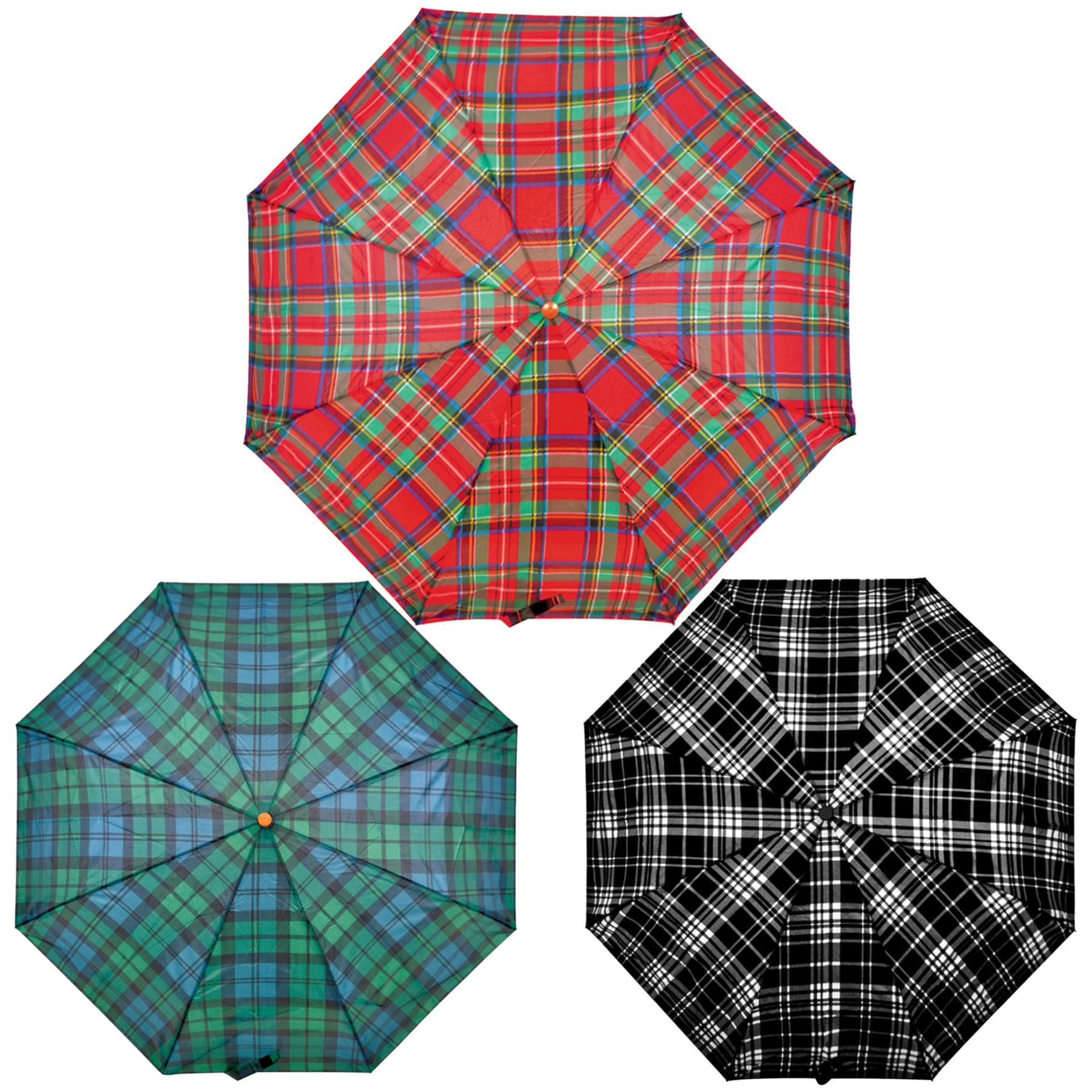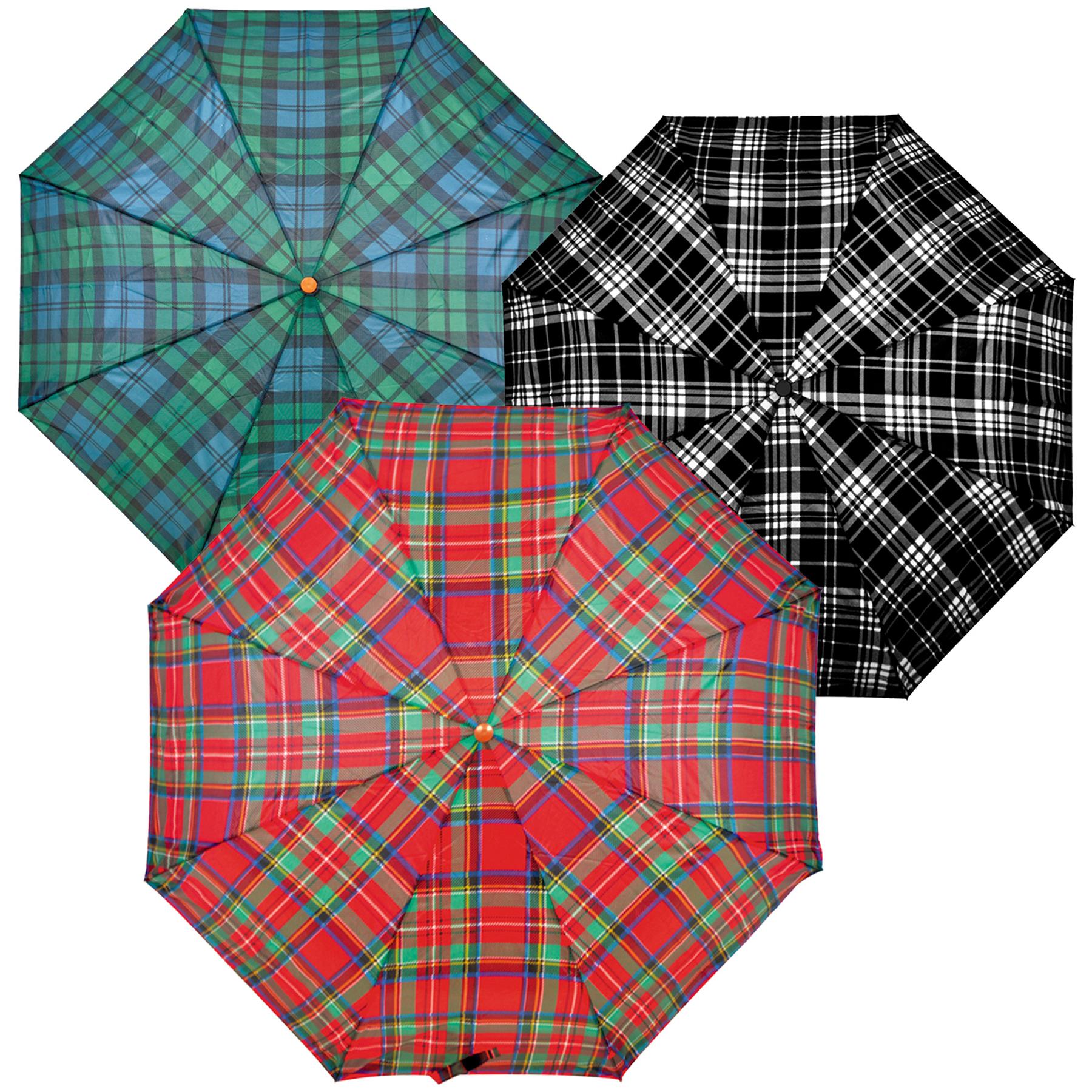 A2Z Supermini Umbrella Tartan|Wood Effect Handle|Protected from the Rain and Sun