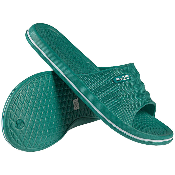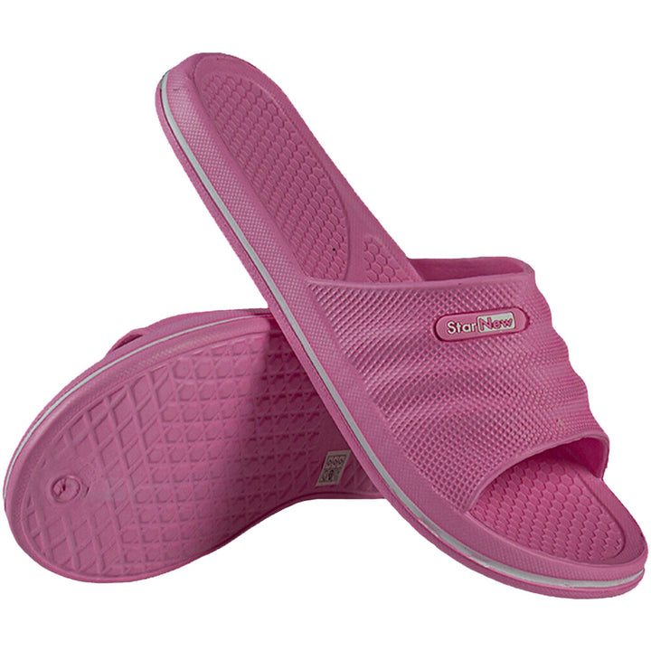 Crafted for optimal comfort and durability, our Ladies Pool Sliders are the ultimate choice for leisurely days spent lounging by the pool, strolls along the beach, or memorable summer getaways. Constructed from lightweight rubber and foam, these sliders are easy to clean and water-resistant. -