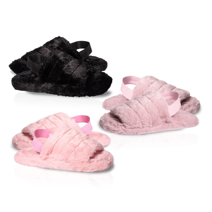 A2Z Women Sliders Fluffy Faux Fur Peep Toe Warm Winter Soft Cosy Ladies Slippers