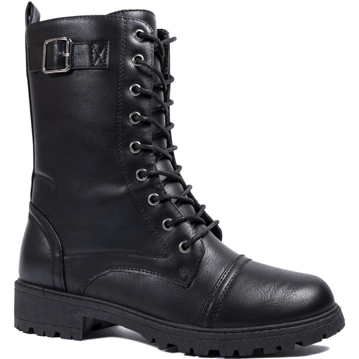 A2Z Womens Combat Boots PU Leather Lace Up Fastening Ladies Army Military Shoes