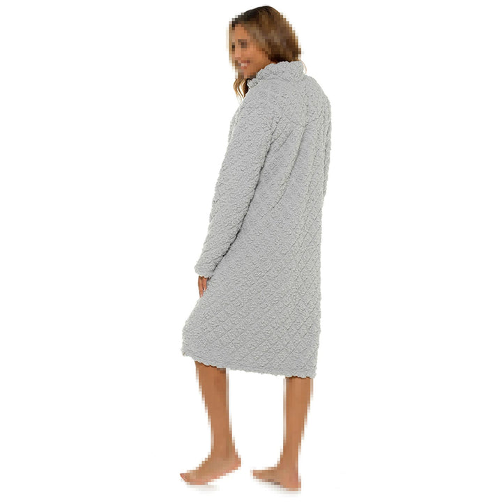 A2Z Womens Foxbury Diamond Fleece Zip Up Robe Soft Warm Cosy Dressing Gown