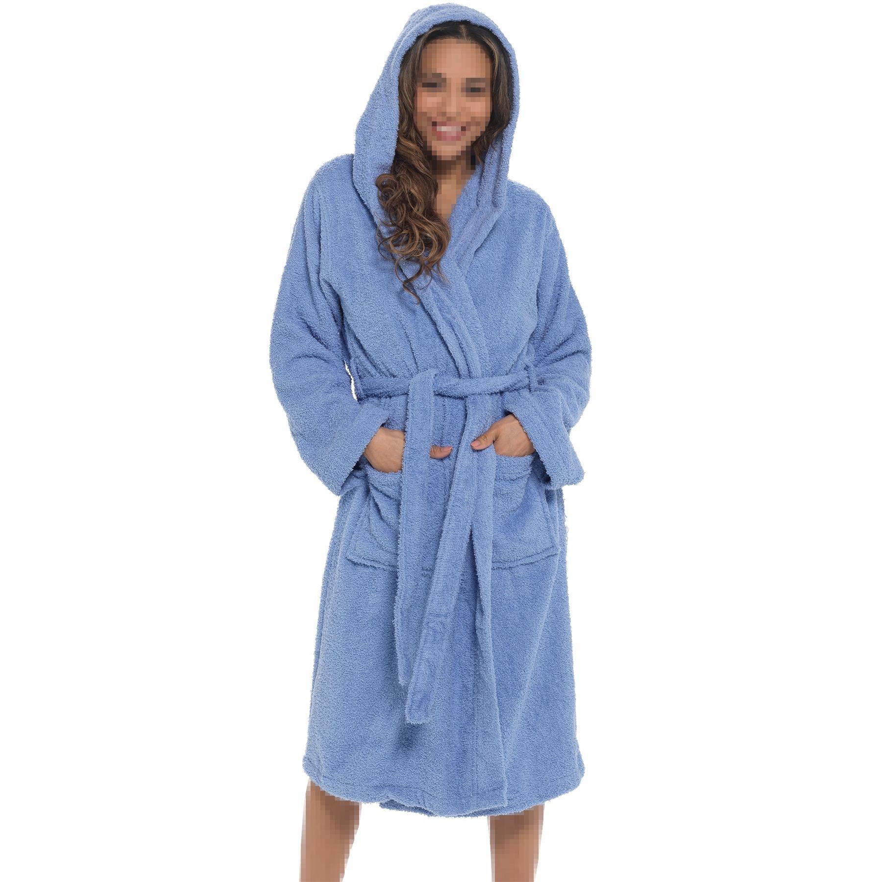 A2Z Women's Luxurious 100% Cotton Towelling Bathrobe Hooded Towel Changing Robe