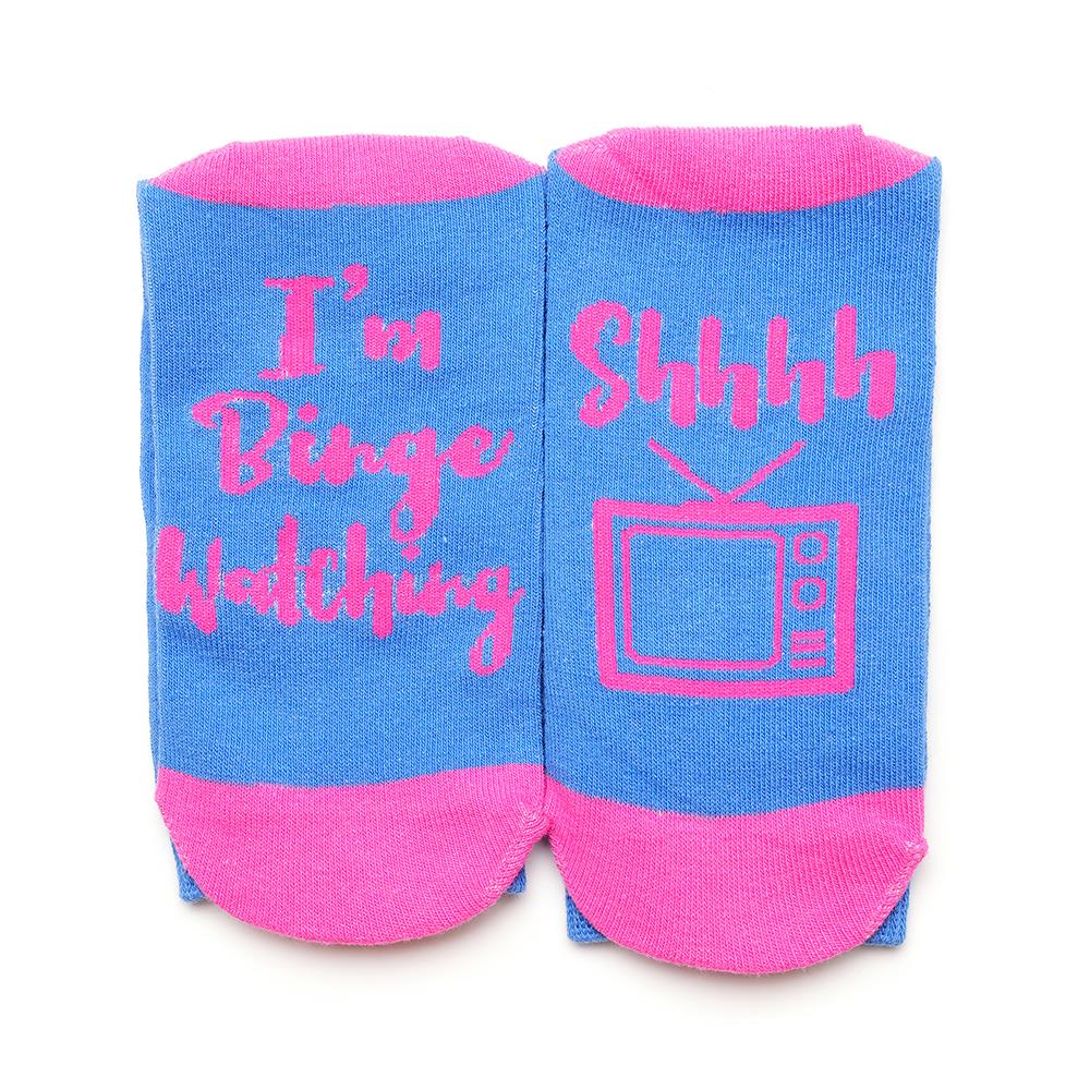 Our Ladies Slogan Novelty Cosy Socks are not just about warmth they are a fun expression of your personality. Available in four charming colours, each pair features a half-slogan print on one foot and a complementary half on the other, creating a unique and playful look. Choose from delightful slogans like "IF YOU CAN READ THIS DO NOT DISTURB", "I'M BINGE WATCHING SHHH", or "IF YOU CAN READ THIS BRING." Elevate your cozy wardrobe with a touch of whimsy! -