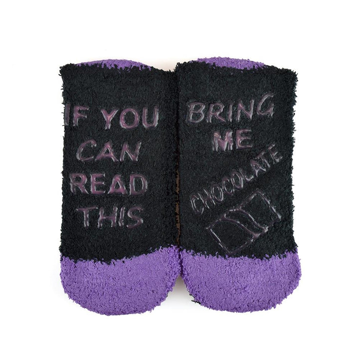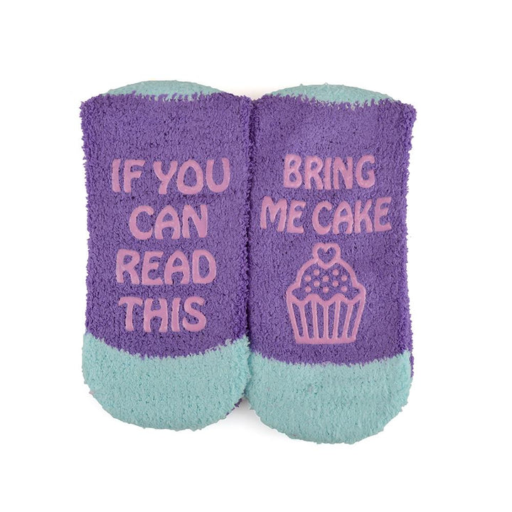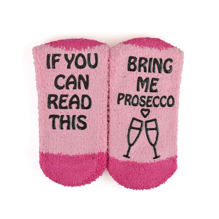 Our Ladies Slogan Novelty Cosy Socks are not just about warmth they are a fun expression of your personality. Available in four charming colours, each pair features a half-slogan print on one foot and a complementary half on the other, creating a unique and playful look. Choose from delightful slogans like "IF YOU CAN READ THIS BRING ME PROSECCO", "IF YOU CAN READ THIS BRING ME" or "IF YOU CAN READ THIS BRING ME CAKE." Elevate your cozy wardrobe with a touch of whimsy! -