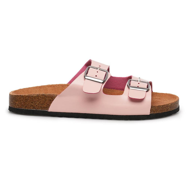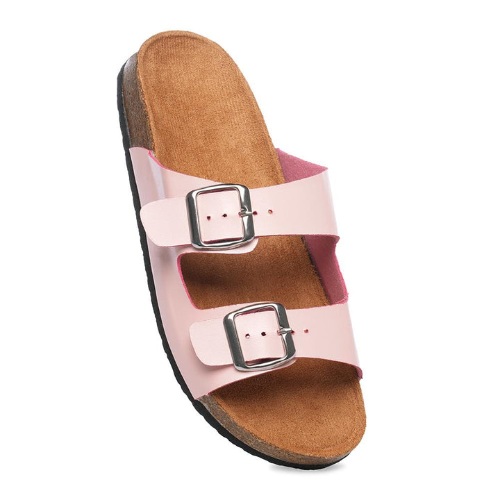 A2Z Womens Open Toe Footbed Sandals Slip On Double Strap Buckle Cork Slide Mule