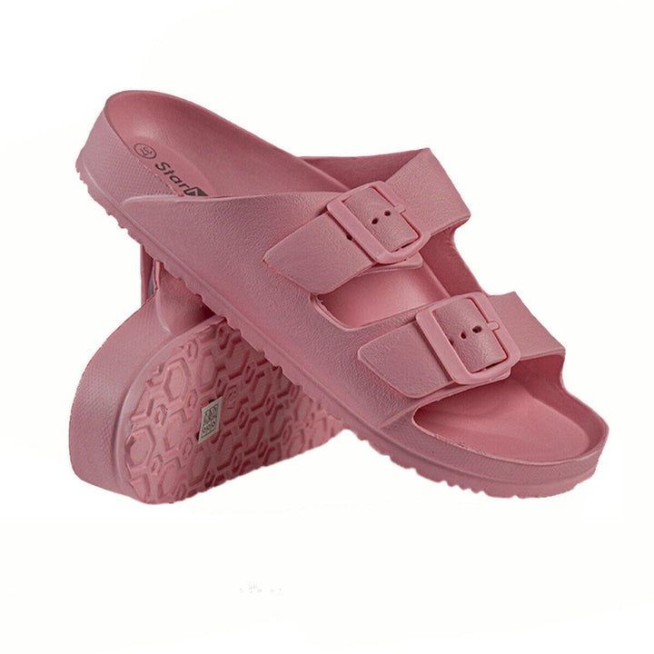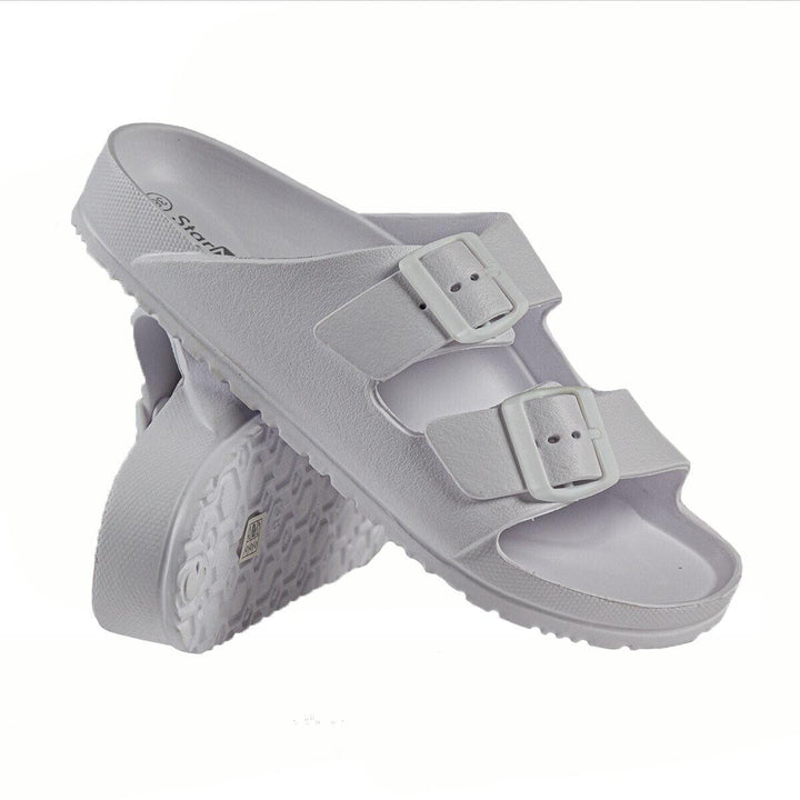 A2Z Womens Open Toe Slides Double Buckle Straps Summer Sandals Beach Pool Slider