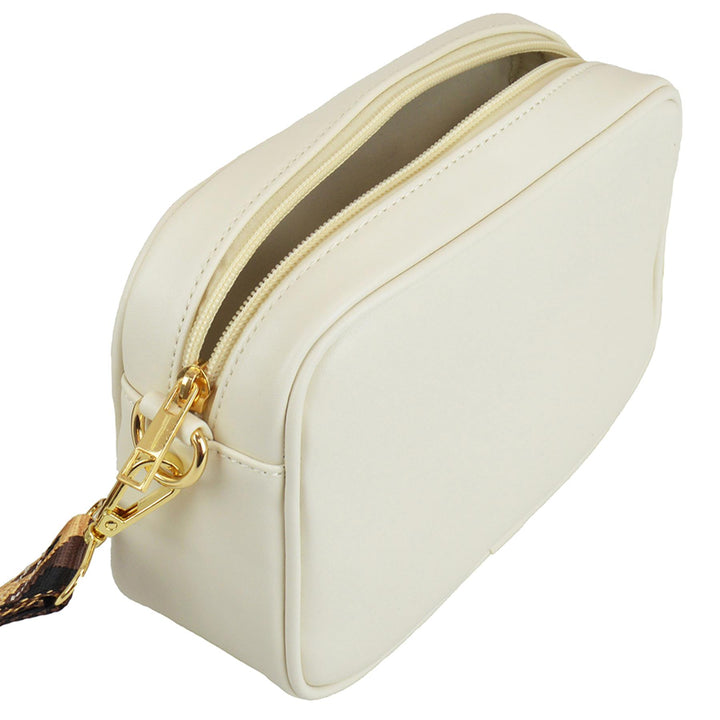 The adjustable gold strap offers a customized fit for enduring comfort throughout the day. It is designed for effortless carrying while preserving an element of sophistication. It is tailored to accommodate essential items and seamlessly merges utility with an elegant aesthetic. -