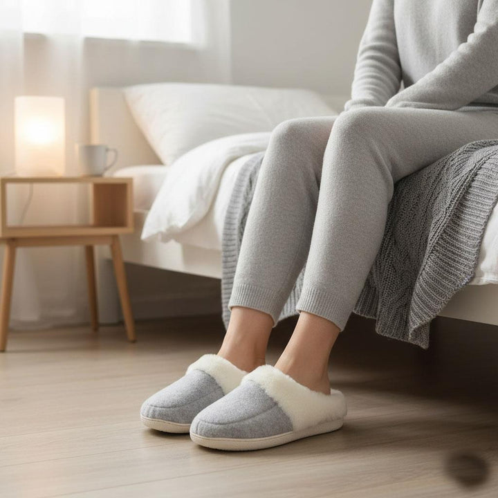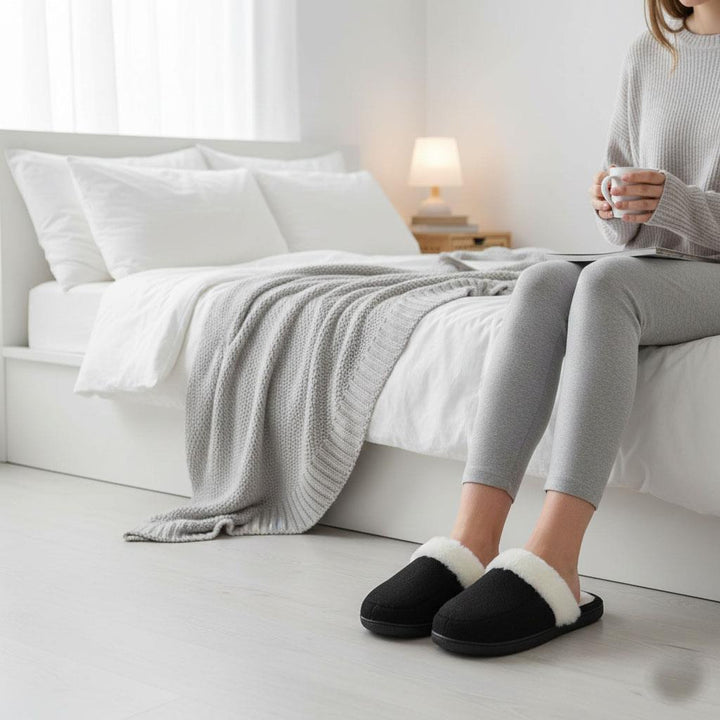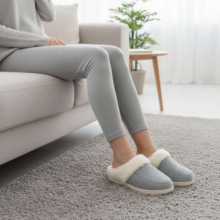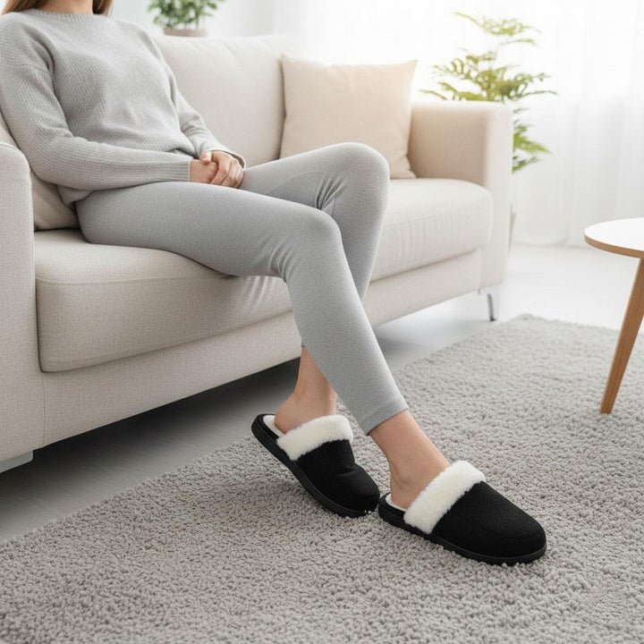 Lined with ultra-soft faux fur, these slippers wrap your feet in warmth and plush comfort. The padded inner sole cushions every step, while the lightweight feel ensures all-day cosiness without any bulk – ideal for morning routines or lazy evenings. -
