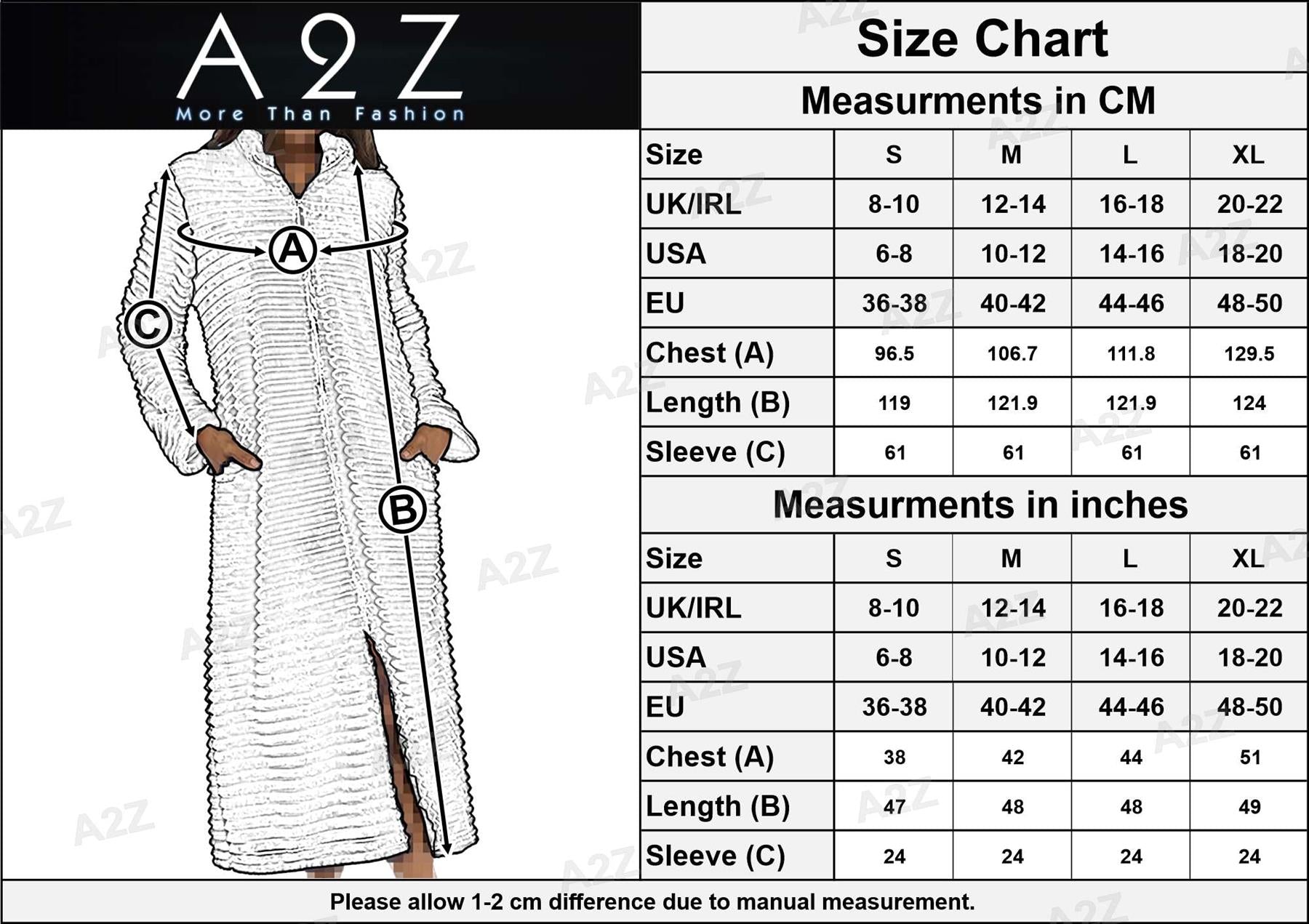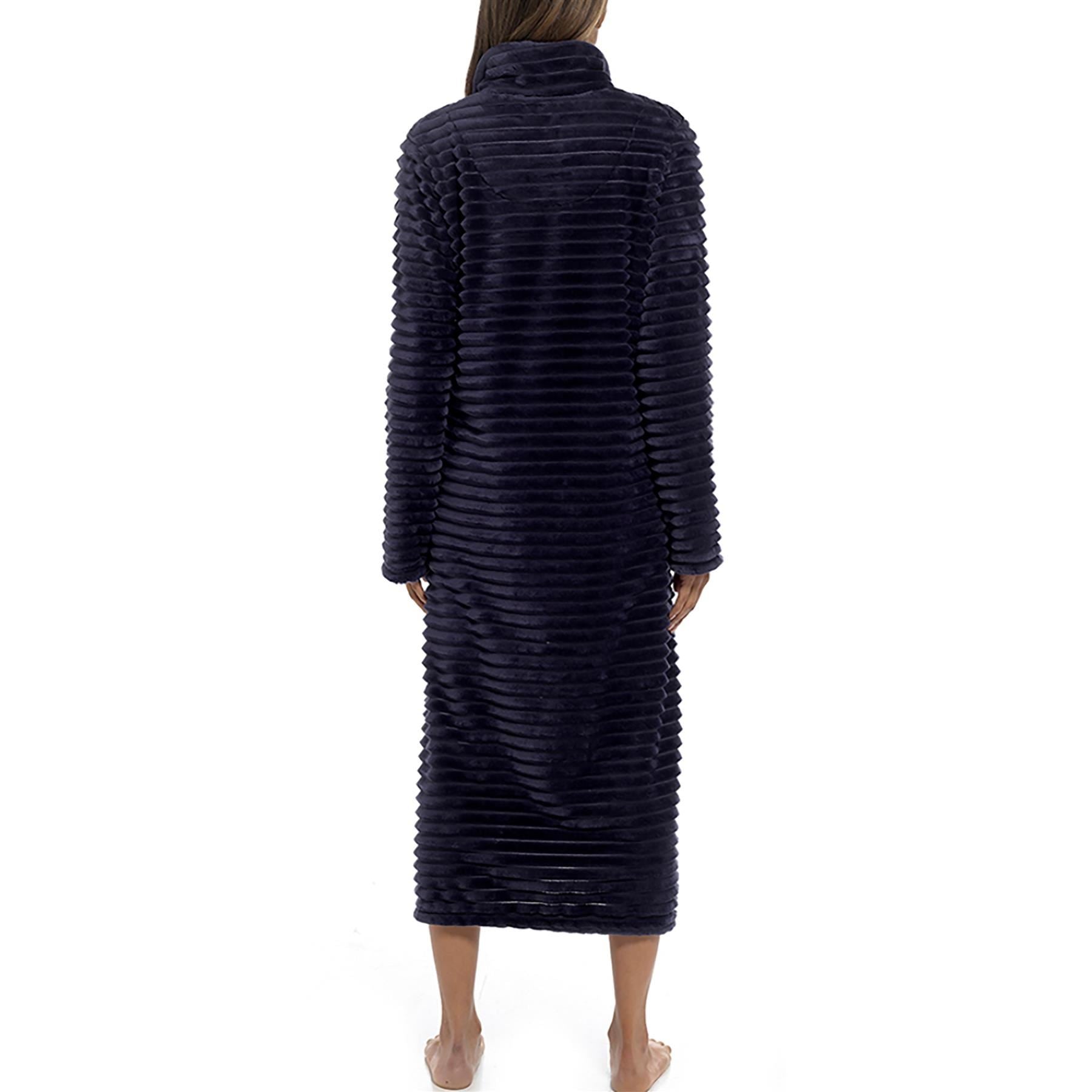 A2Z Women's Zip Through Warm Winter Ribbed Dressing Gown Elegant Ladies Loungewear Zip Up Ribbed Fleece Housecoat Cosy Winter Women's Sleepwear Lounging Robe for Parties