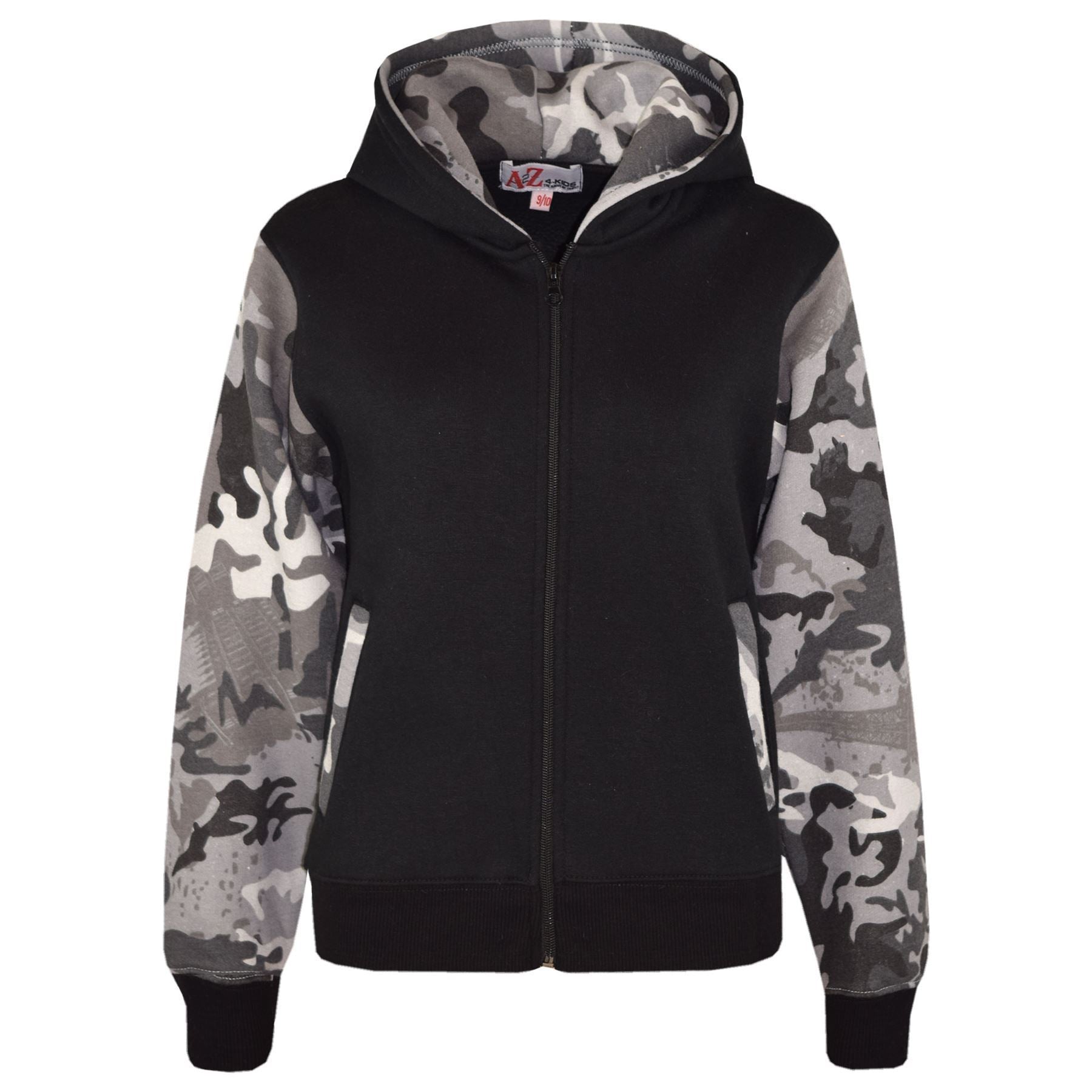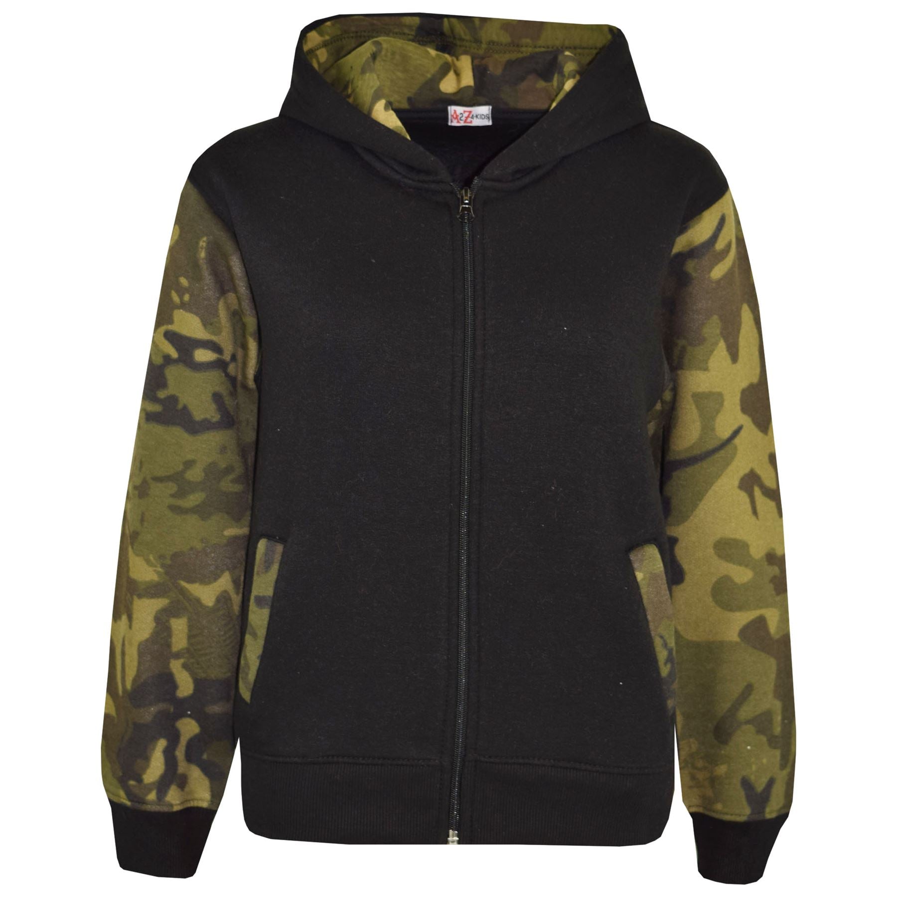 Boys Girls Jackets Kids Fleece Camouflage Hooded Hoodie Zipped Top Jacket 7-13 Y