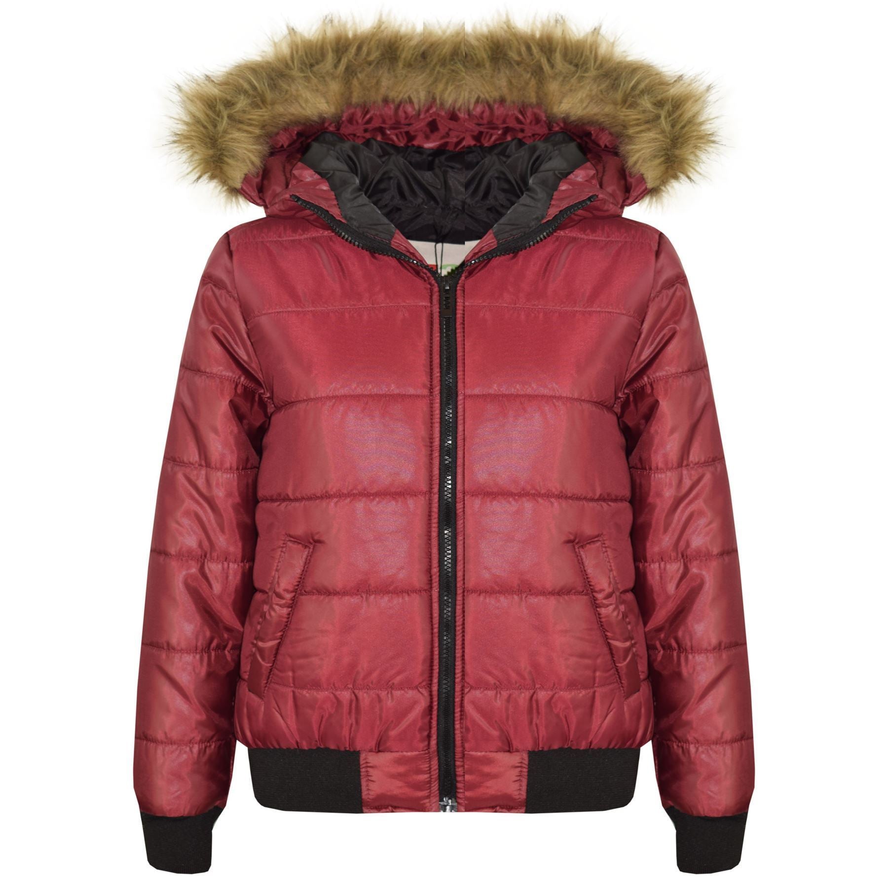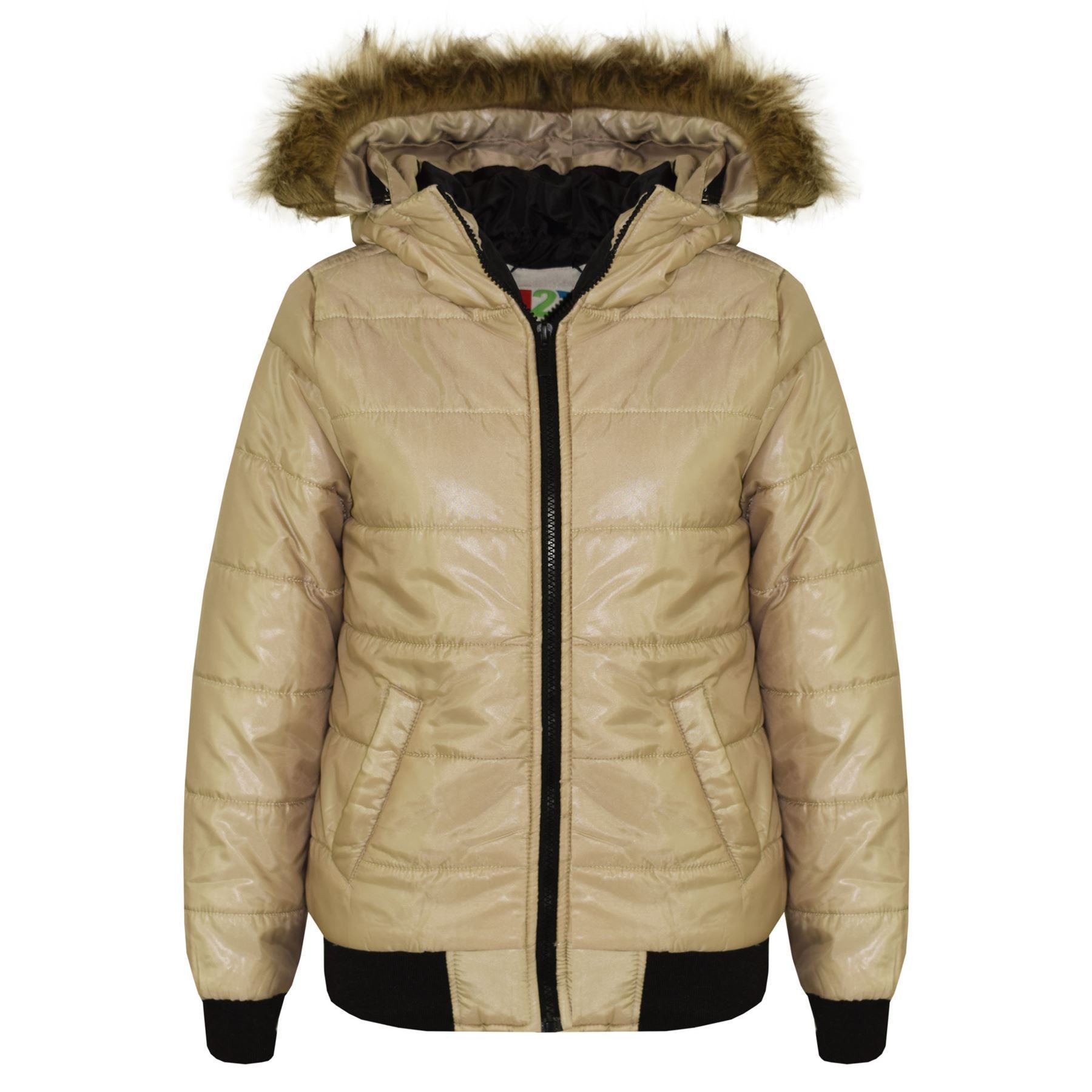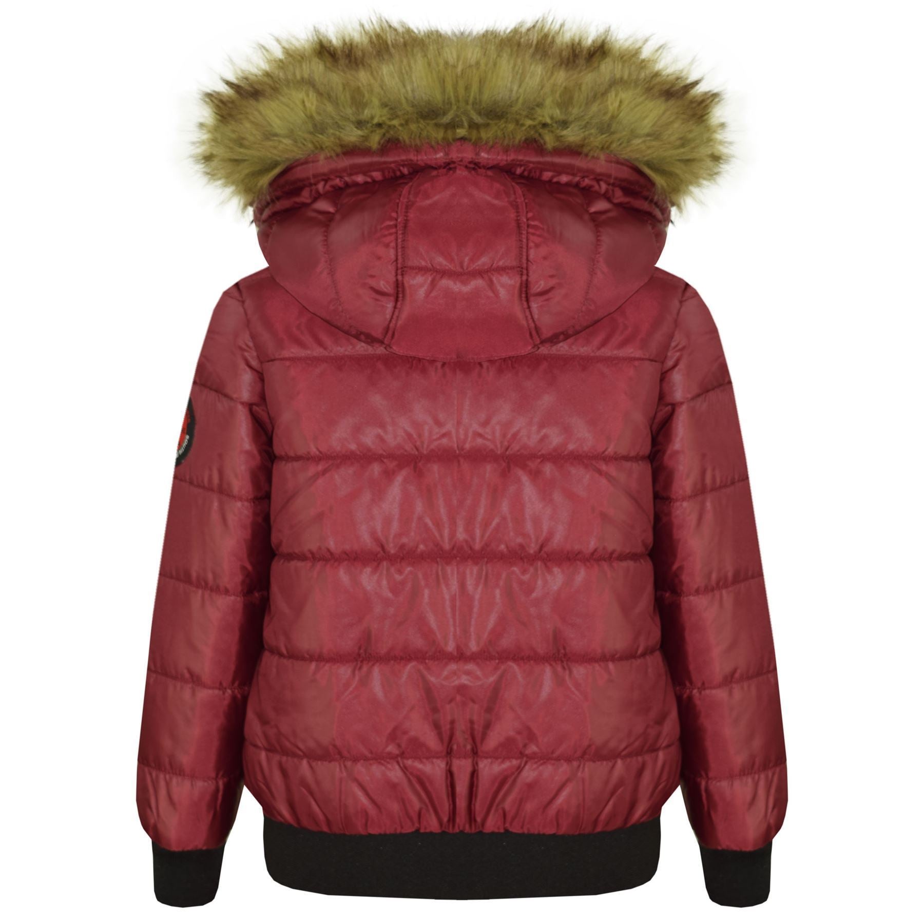 Boys Girls Jackets Kids Maya Faux Fur Hooded Padded Puffer Bubble Coats 5-13 Yrs