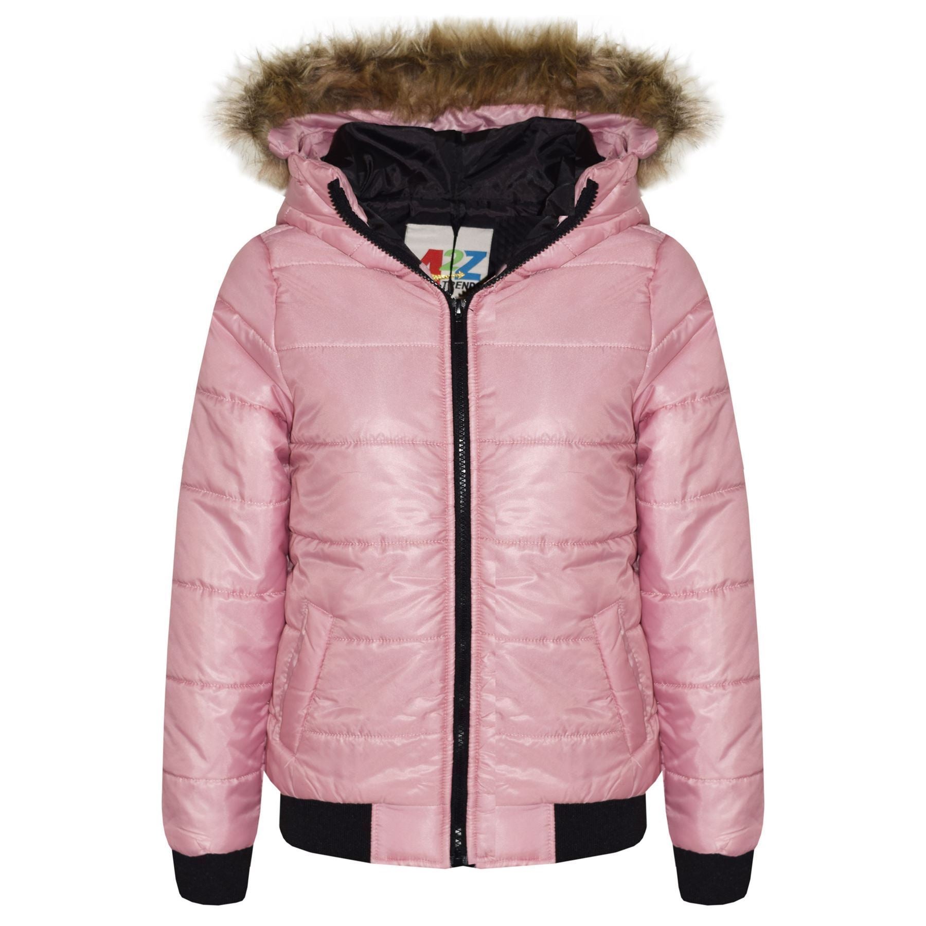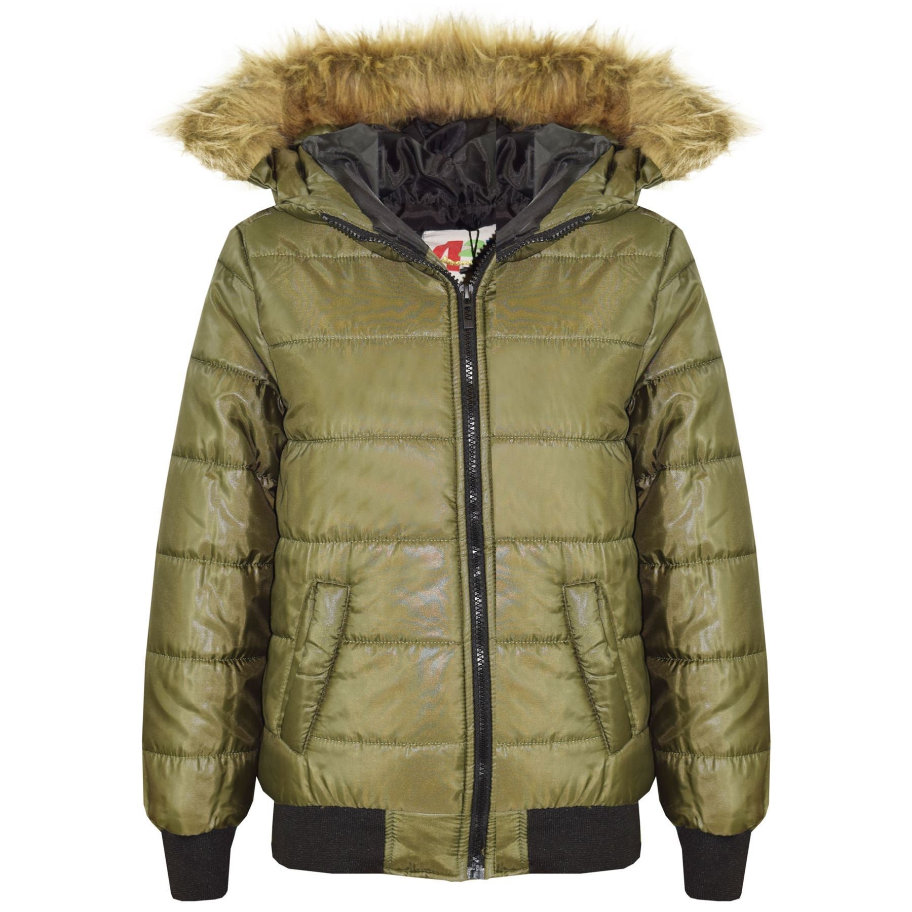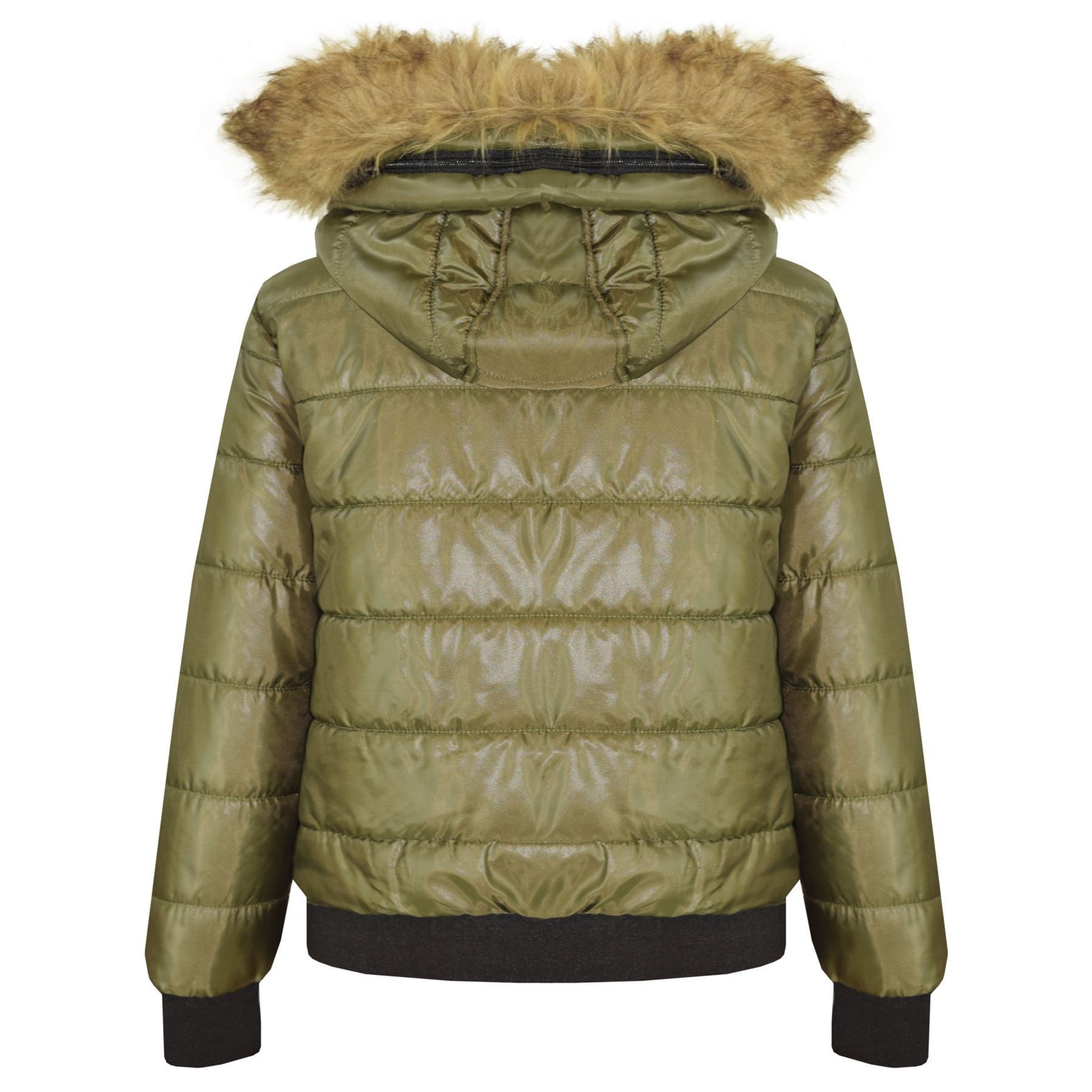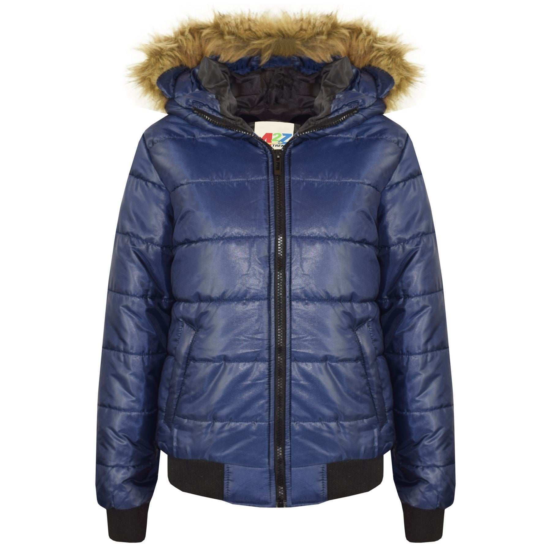 Boys Girls Jackets Kids Maya Faux Fur Hooded Padded Puffer Bubble Coats 5-13 Yrs