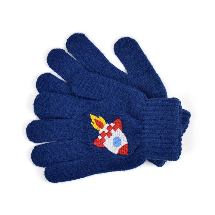 These kids knitted gloves feature playful Shark and Rocket embroidered motifs that are both vibrant and charming. Their classic design adds a touch of liveliness, making them a perfect match for winter outfits. These gloves are stylish and practical, effectively keeping kids hands warm against the chilly winds. -