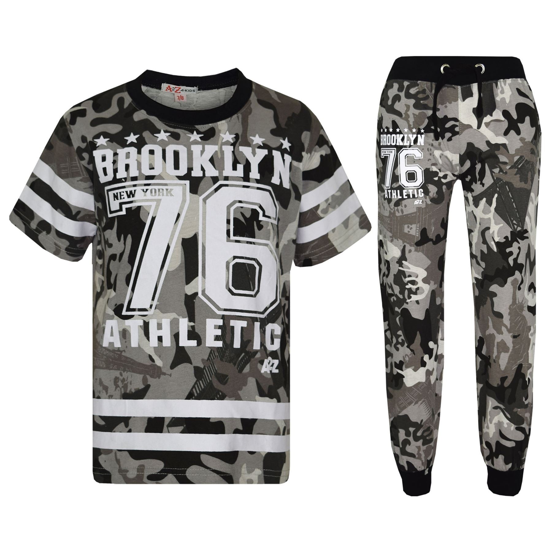 Boys Top Kids Designer Brooklyn 76 Camouflage T Shirt Tops & Trouser Set 5-13 Yr