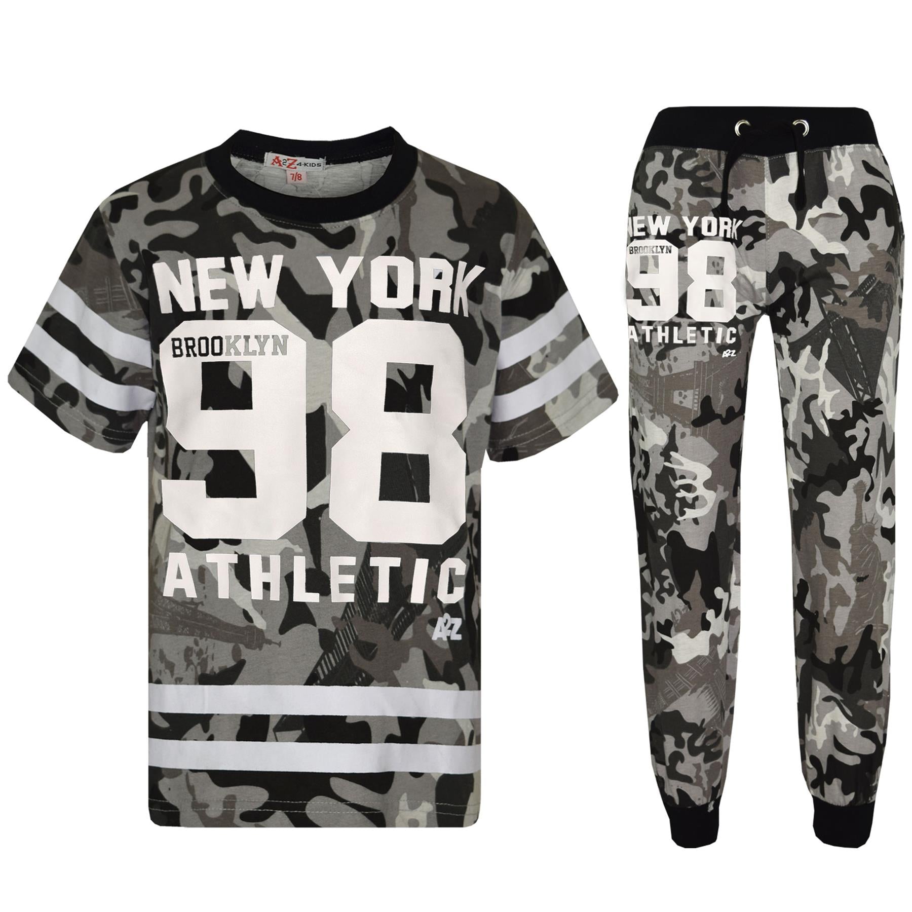 Boys Top Kids New York Brooklyn 98 Camouflage T Shirt Tops & Trouser Set 7-13 Yr