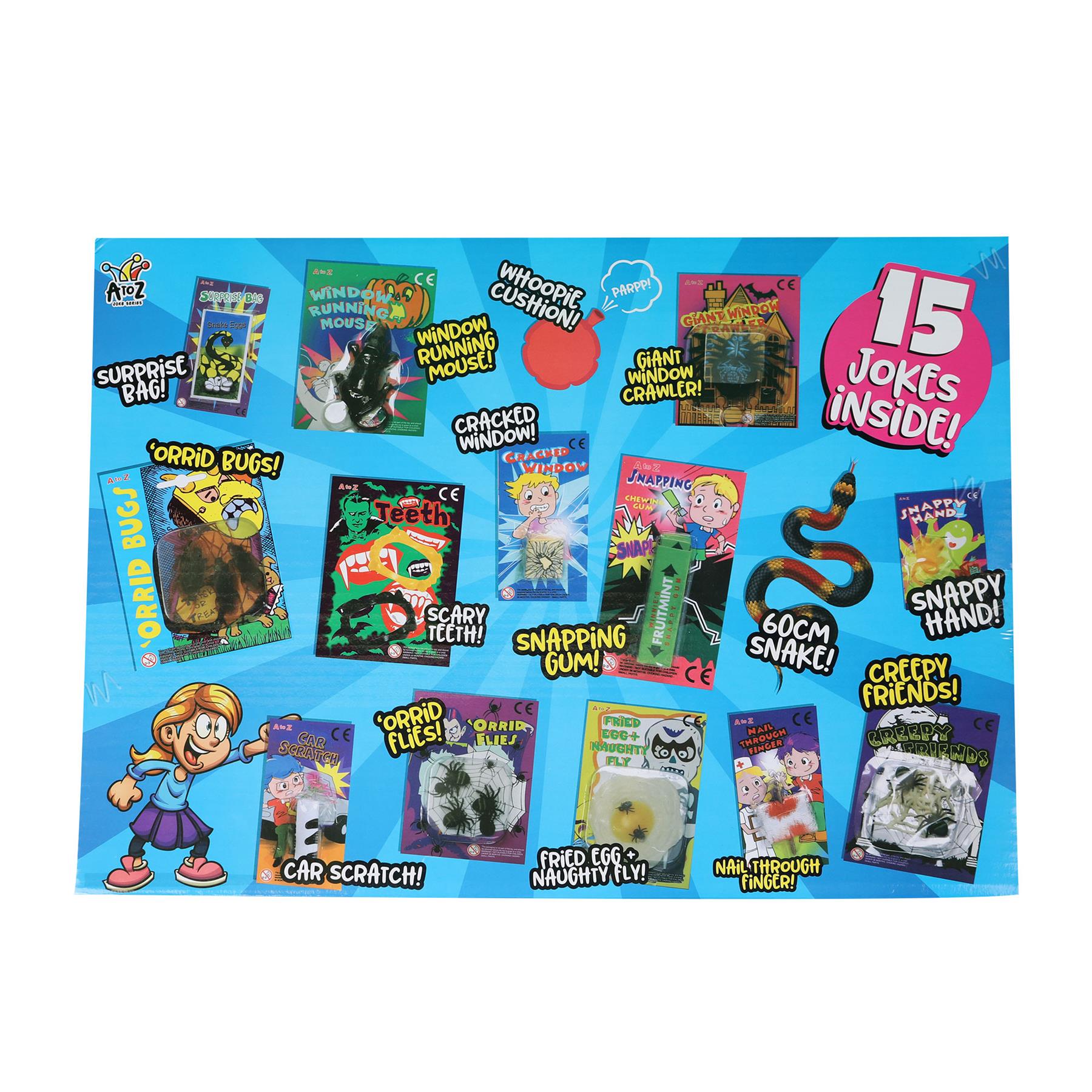 Surprise Snack Bag, Tooth Nail, Fingernail, Car Scratch, 'Arid Bugs, Running Mouse, Snappy Hands, Snapping, Chewing Gum, Creepy Friends, Naughty Flies, Cracked Window, Giant Window Window 'Orrid Flies, Large Whoopee Cushion, 60cm Realistic Snake. -