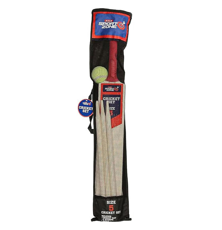 Cricket Set Wooden Bat/Stumps/Bails And Soft Ball Size 3 Game Set With Carry Bag