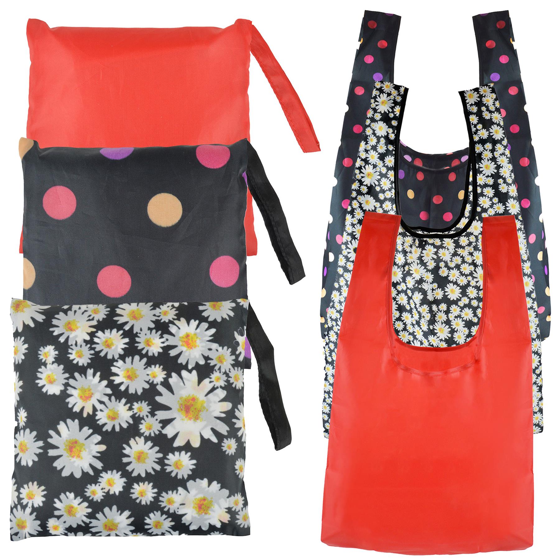 These plastic shopping tote bags come in red,spotted and floral colours with available in one size (39x38x11 Cm).
