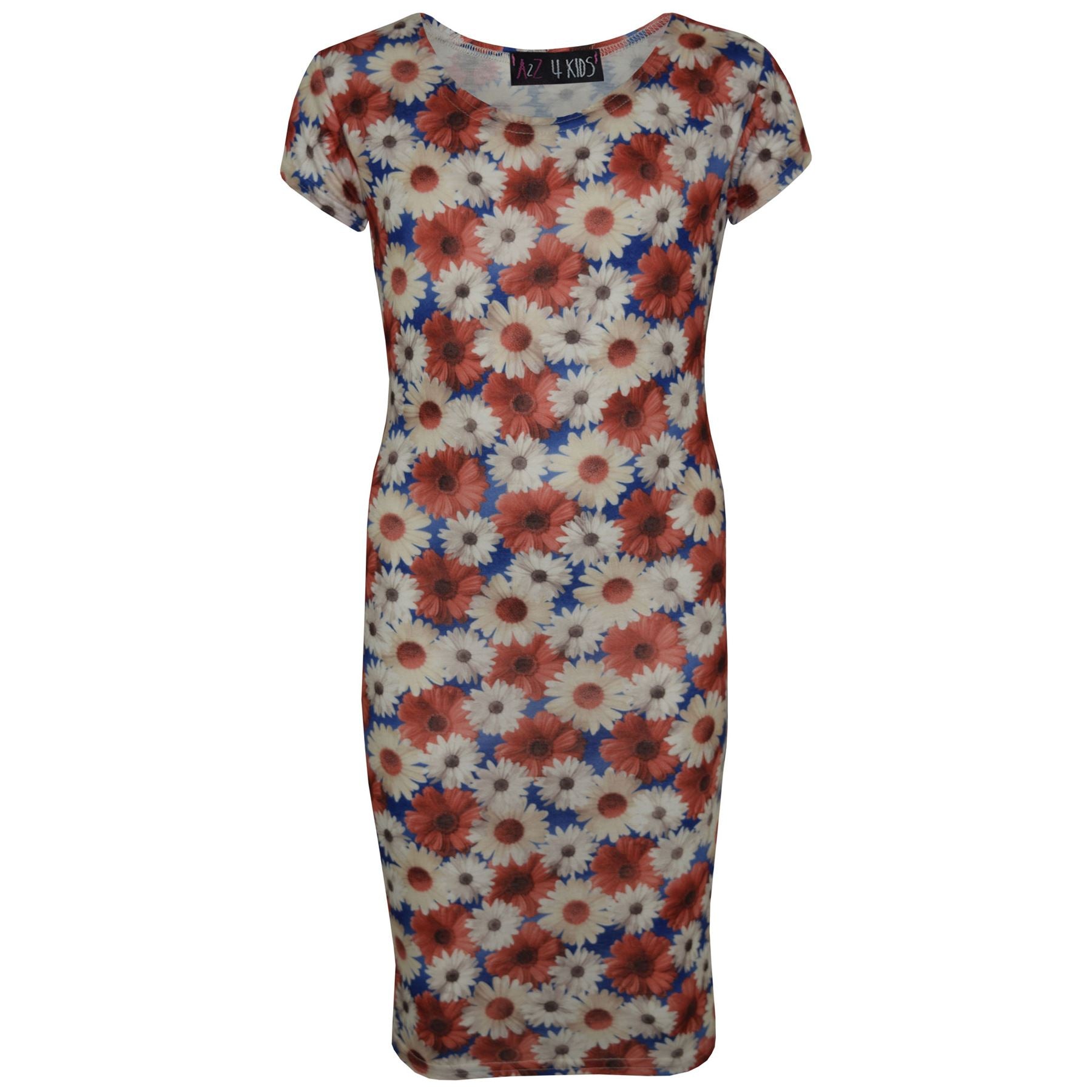 Gilrs Dress Kids Daisy Floral Print Bodycon Fashion Midi Dresses Top 7-13 Years