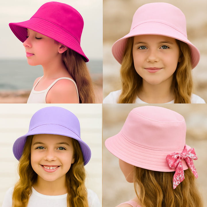 Girls Boys Bucket Hat 100%Cotton Foldable Summer Sun Hat UV Protection Beach Cap